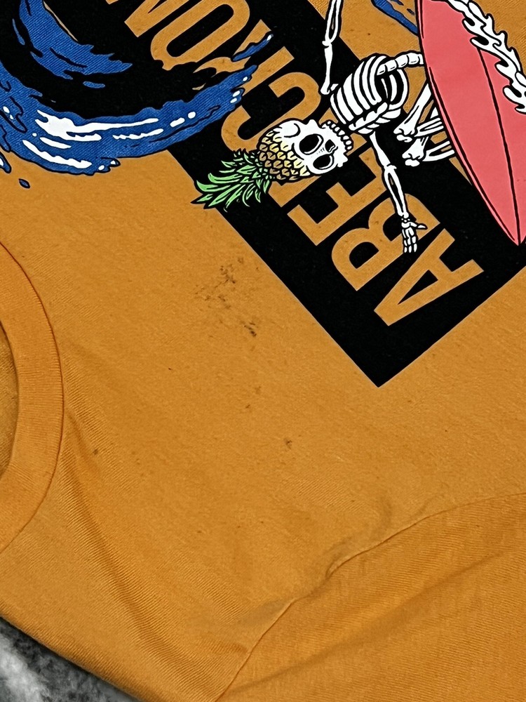 Abercrombie Kids Orange Skeleton Surfer T-shirt Sz 15-16. Imperfections. See pics.