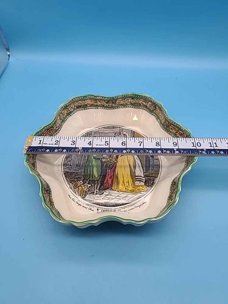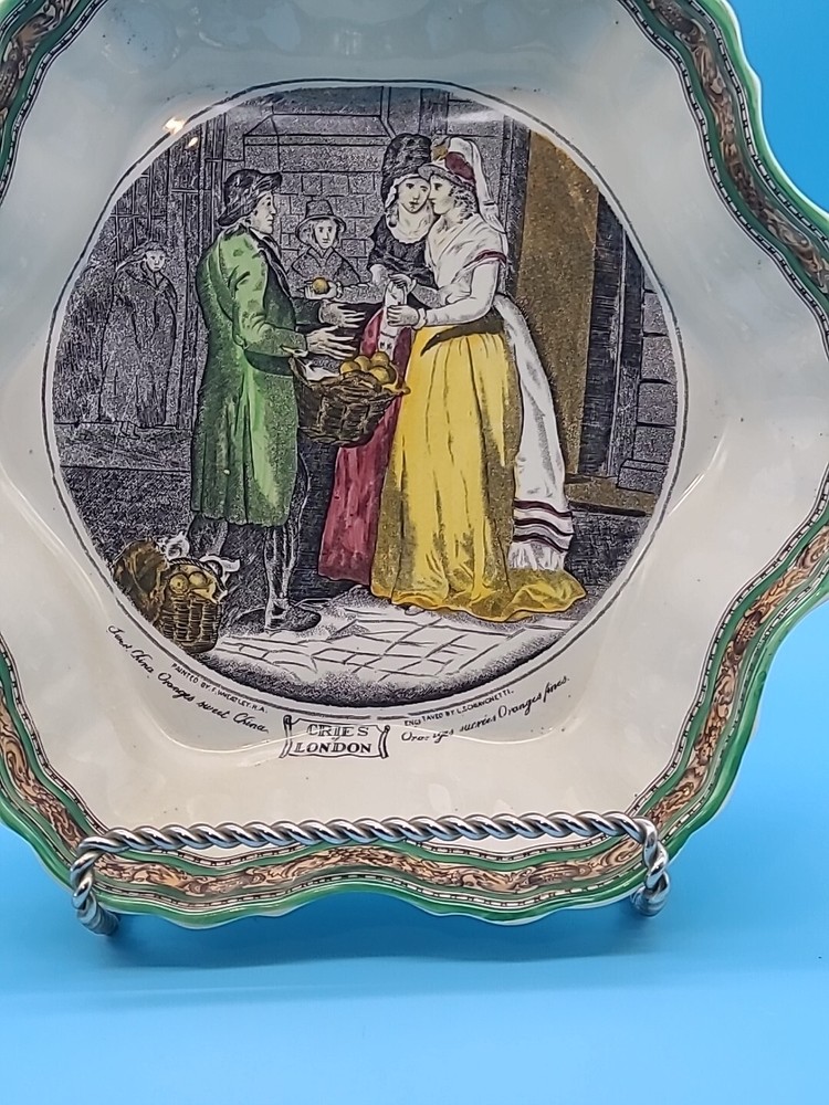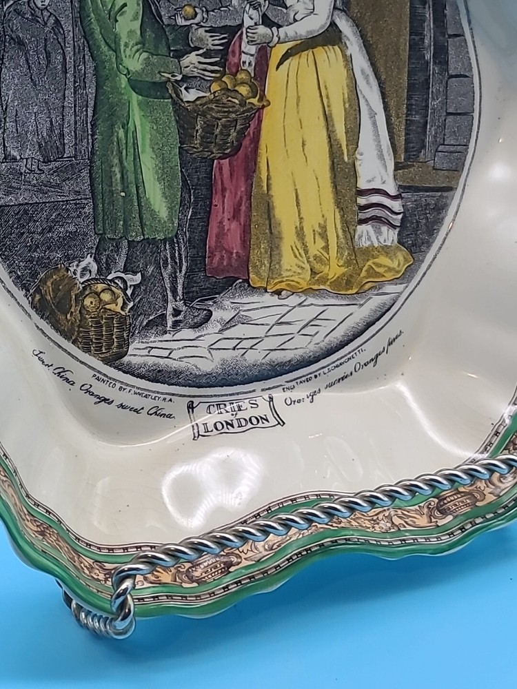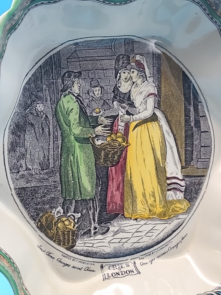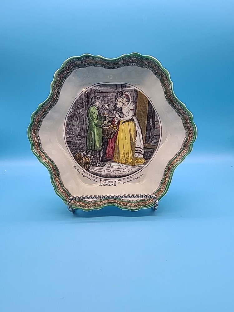Adams Cries of London Salad Plate Octagonal Oranges This nice vintage octagonal salad plate from Adams’ Cries of London pattern features an orange seller. Originally painted by F Wheatley R.A. and engraved by Schiavonetti. It has the round backstamp used by Adams after the mid-1960s. 8-1/4”. Condition: No chips, cracks, or crazing. BB132