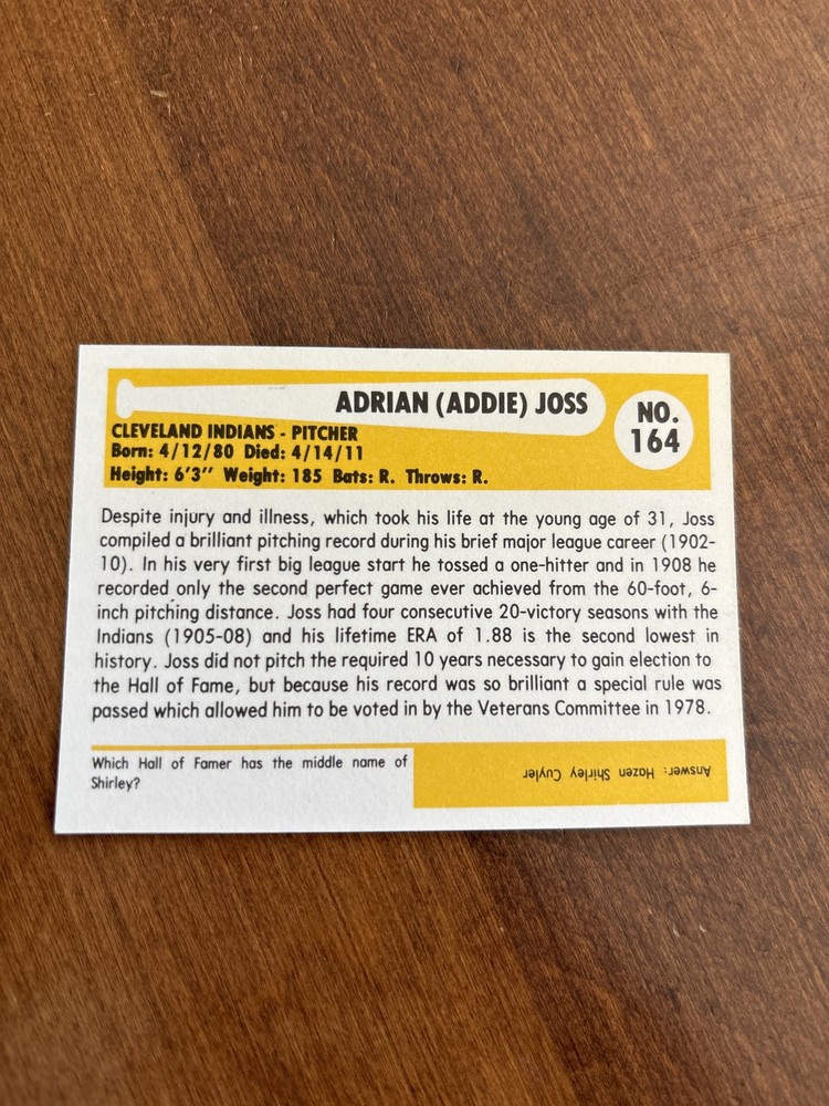 | Player/Athlete | Addie Joss |