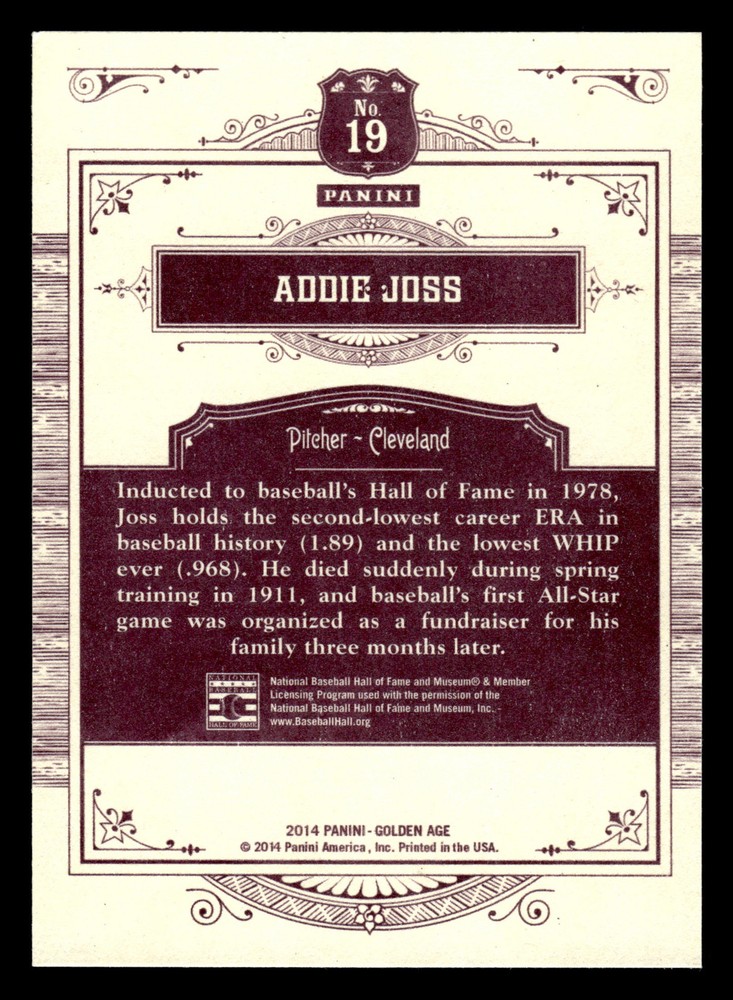 Card Specific Details Player: Addie Joss Set: 2014 Panini Golden Age Card Number: 19 Team: Cleveland Naps Variation: Shipping Information: All items with within 24 hours of payment being received. Shipping information will be sent to your email once the shipping label has been generated. For the first card it is $.99 for Shipping then each additional card it is $.15 extra. Take a look at all of our listings, we are more than happy to offer a discounted shipping on multiple purchases of our items! All of our ebay items will automatically combine shipping rates and you can select the desired shipping service you would like at checkout.