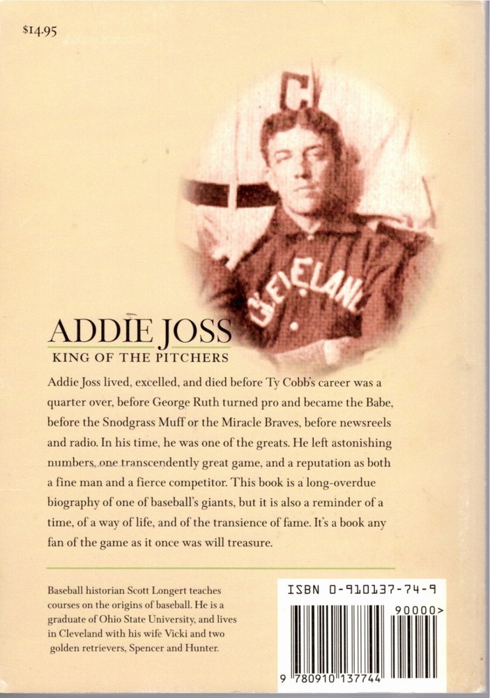 This Sports Book is in like new condition. Very slight cover wear, see pictures. 1998 paperback, Addie Joss: King of the Pitchers by Scott Longert....