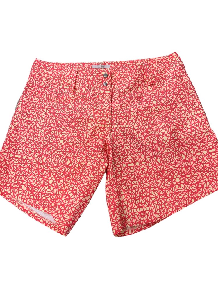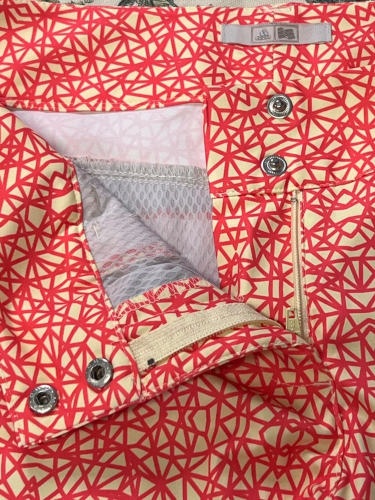 These Adidas Bermuda golf shorts are perfect for any active woman who loves to play golf. With a 7-inch inseam and mid-rise, they offer both comfort and style both on and off the course. The shorts come in a vibrant neon orange color which adds to the playful and sporty theme, perfect for summer, fall, and spring. Featuring snap and zip closure, belt loops, and slash pockets, these shorts are a perfect blend of style and functionality. The blended fabric of 100% polyester is machine washable with flat front, making them easy to care for. These shorts are suitable for casual occasions and outdoor activities like golf.