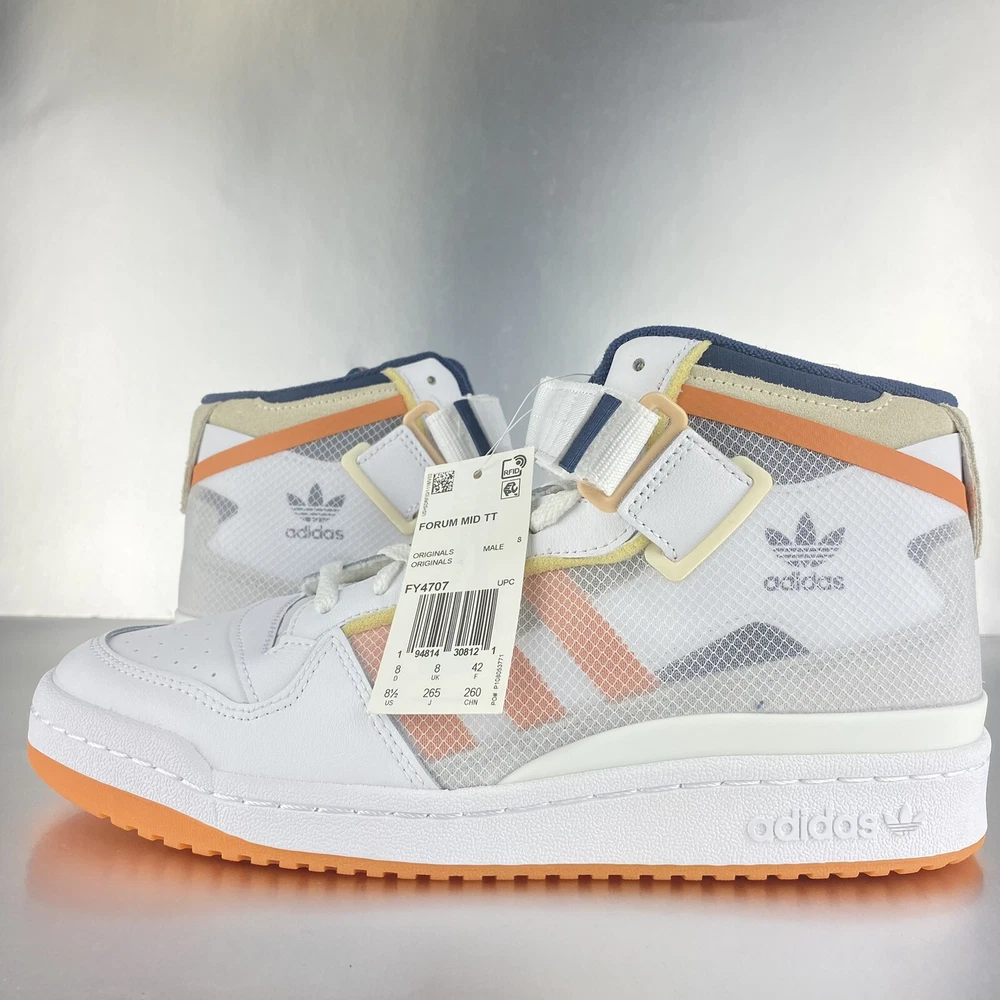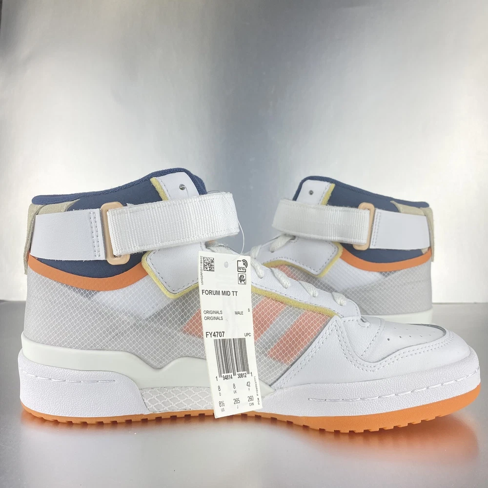 Adidas Forum Mid TT FY4707 Men’s Size 8.5 White, Orange, Blue.