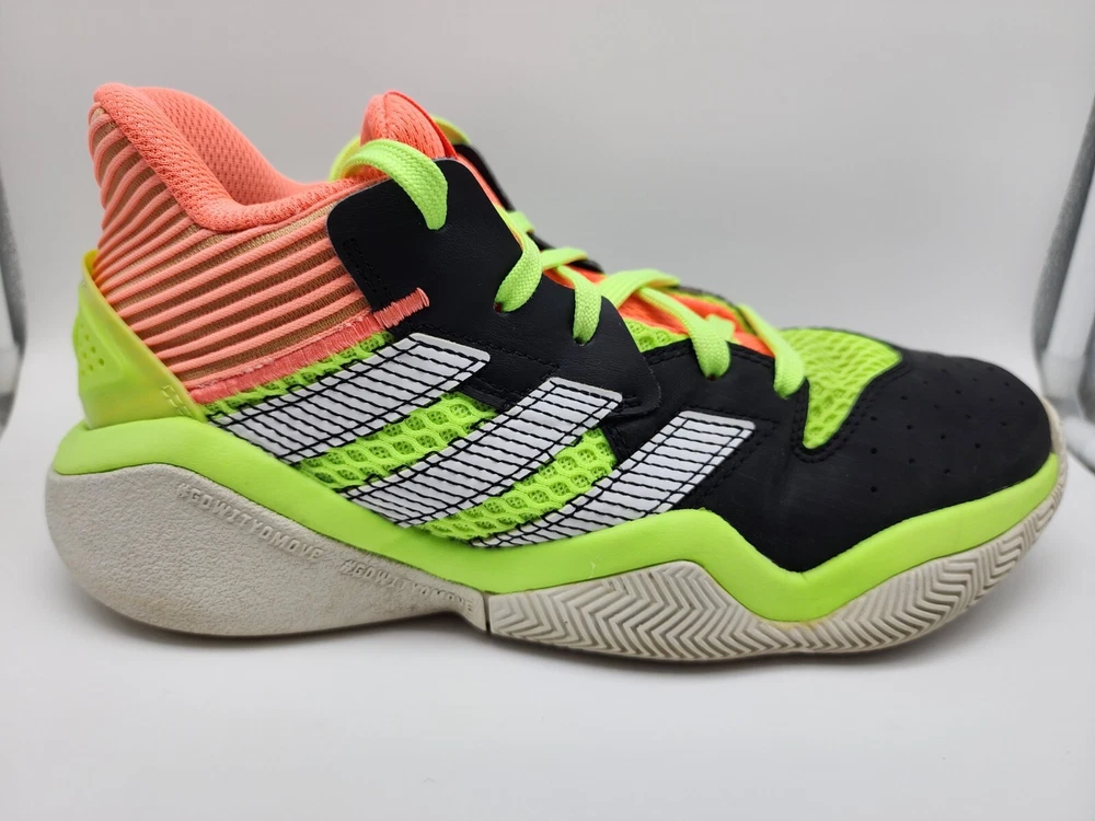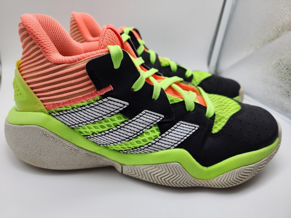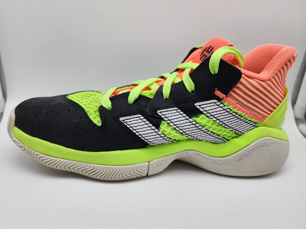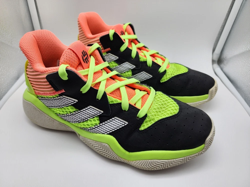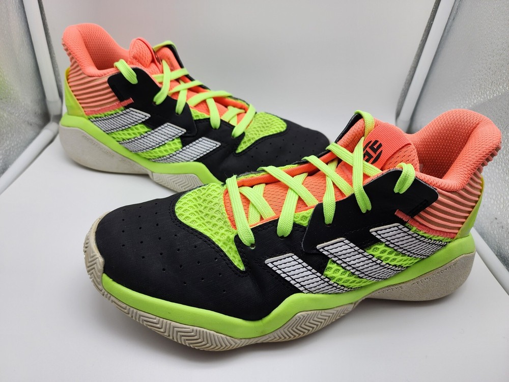 Adidas Harden Stepback Signal Coral Size 6.5 Neon Green /Orange Basketball Shoes Great Pre-Owned Condition. These shoes were worn for a short time - just during a school basketball season. They are in great condition. They are very clean and come from a smoke free home.