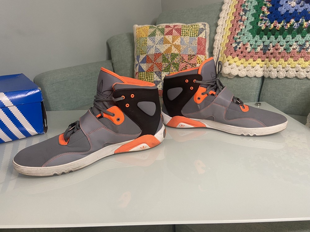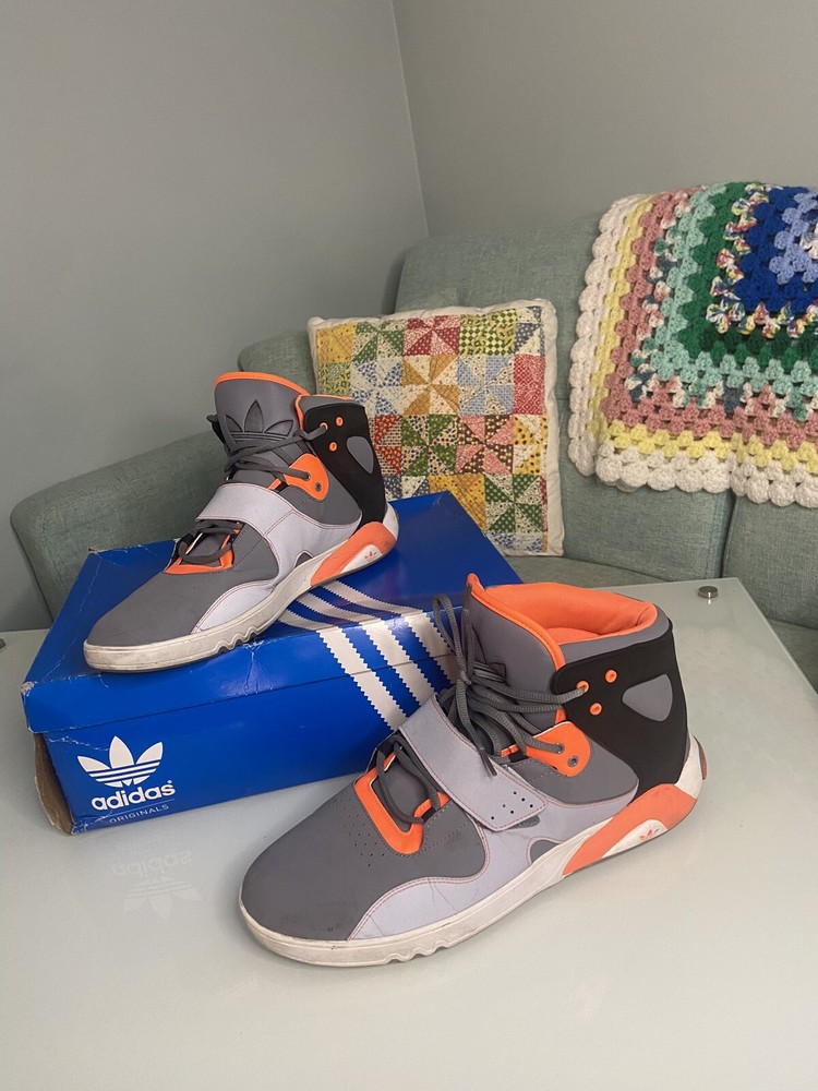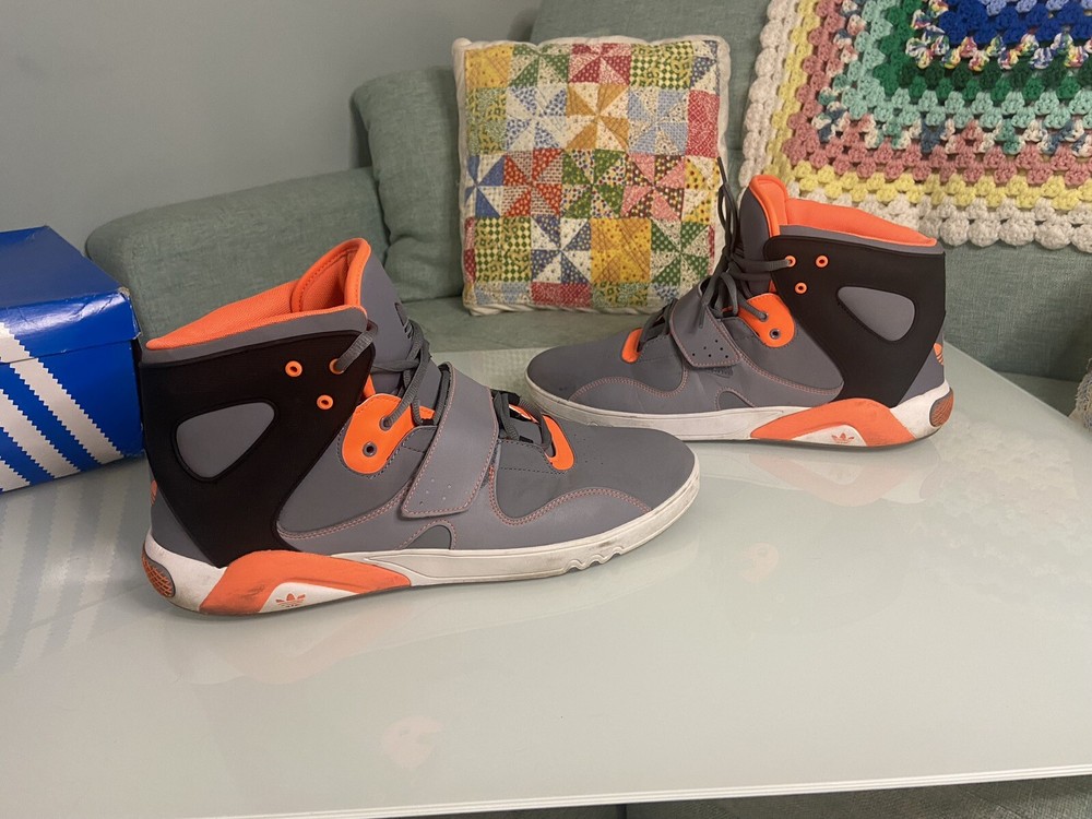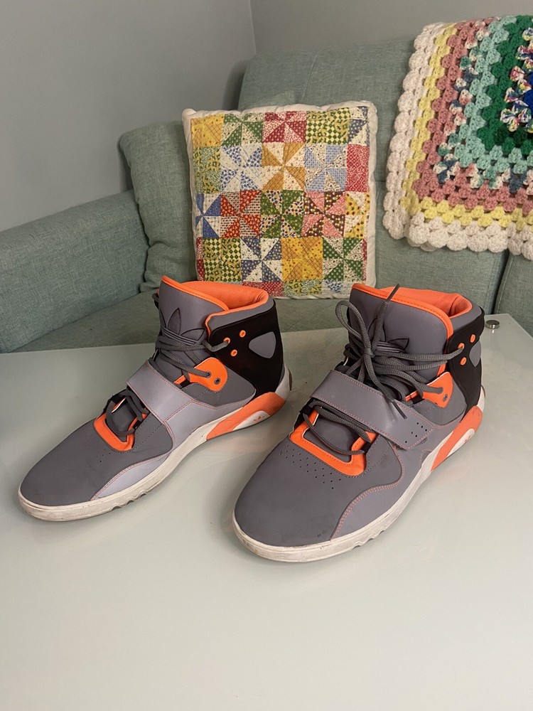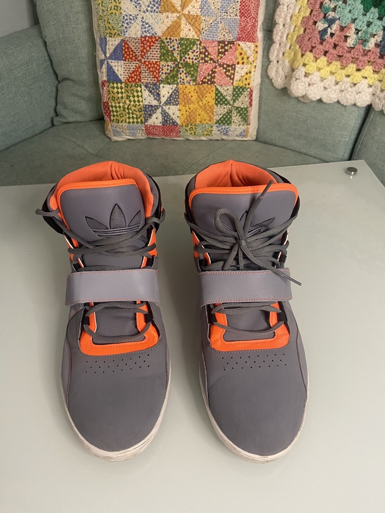 Adidas Roundhouse Mid is a men's athletic sneaker with a mid-top shoe shaft style and lace-up closure. It comes in gray color with orange and black accents, and is available in US shoe size 14 and EU shoe size 43. The shoe is part of the Adidas Roundhouse product line and was released in 2012. It has a M shoe width and is suitable for lifestyle activities.