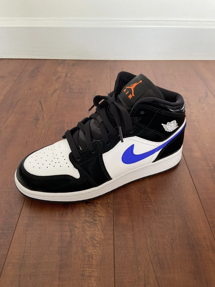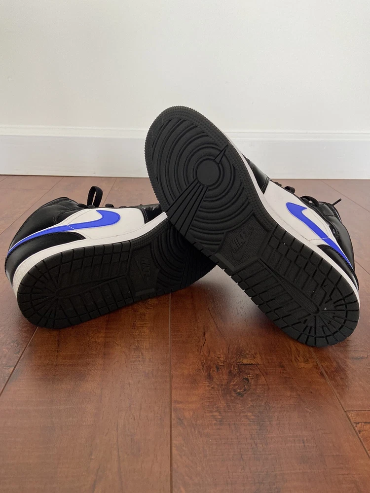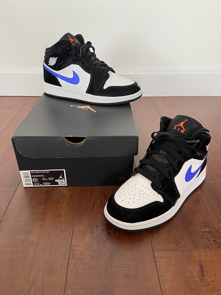 Authentic Air Jordan 1 MID (GS) Black/ Racer Blue/ White. Condition great with original box and gold Jumpman sticker included. Shipped via FedEx ground delivery.
