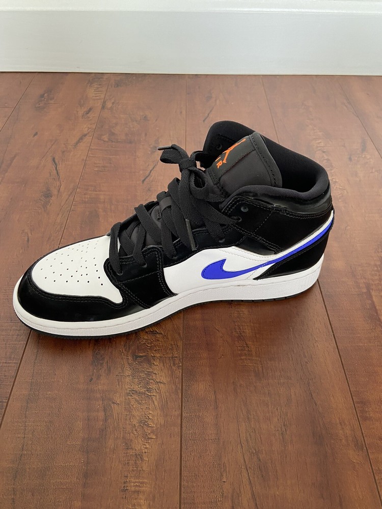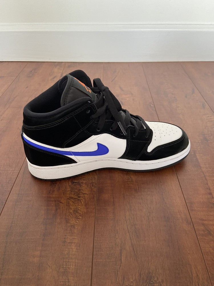 Authentic Air Jordan 1 MID (GS) Black/ Racer Blue/ White. Condition great with original box and gold Jumpman sticker included. Shipped via FedEx ground delivery....