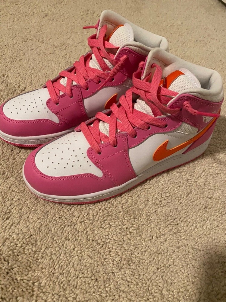 Air Jordan 1 Mid GS 'Pinksicle Orange Worn twice with crease protectors. Perfect condition.