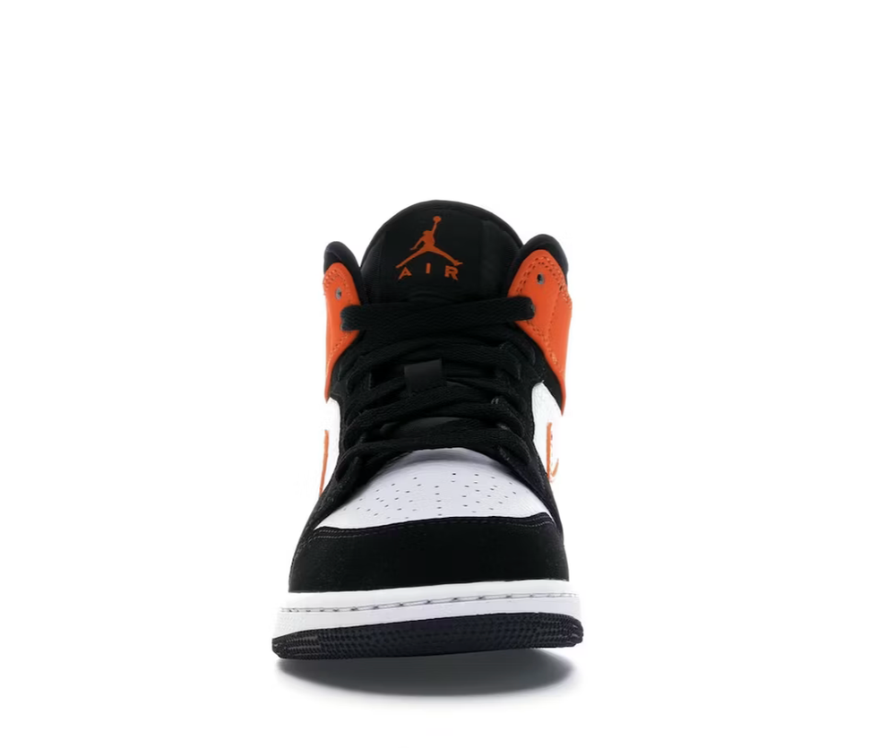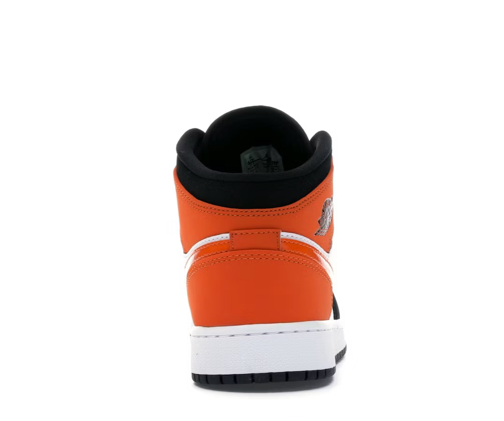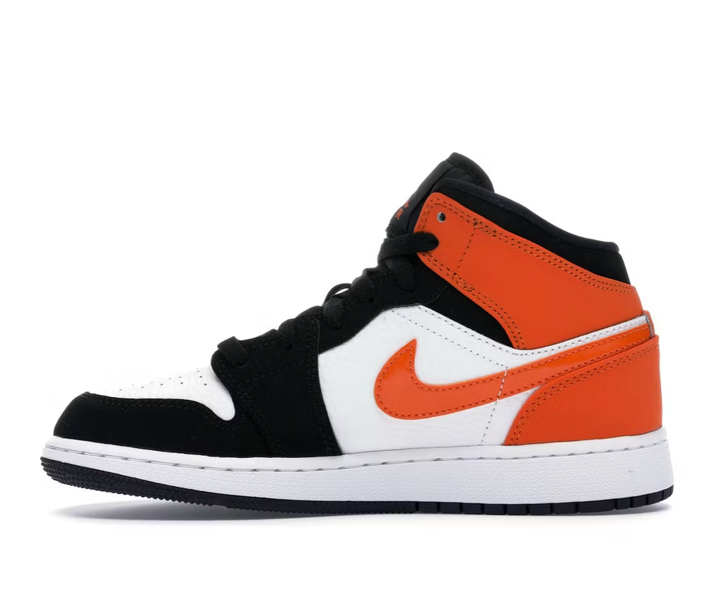 The Air Jordan 1 Mid Shattered Backboard GS arrives in white and orange leather with black nubuck and patent swooshes. The Shattered Backboard Air Jordan 1 is made for grade schoolers, and features a leather upper that takes on a simple two-tone look where a white base is overlaid by orange and black overlays. On Orange Swoosh dons the lateral and medial sides, while a black Wings logo sits on the ankle. A split-colored rubber cupsole encasing an Air unit finalizes the design.