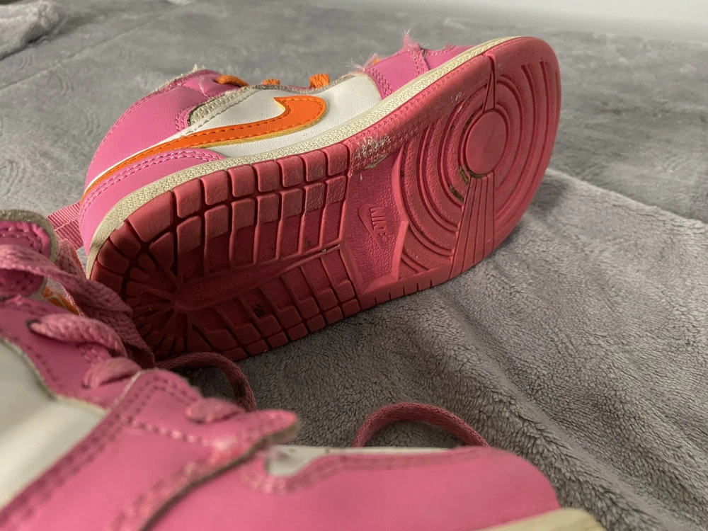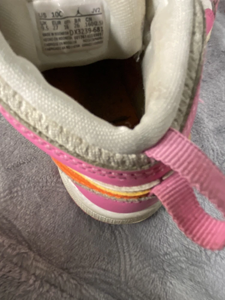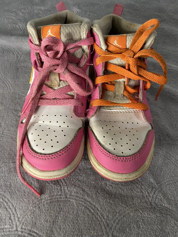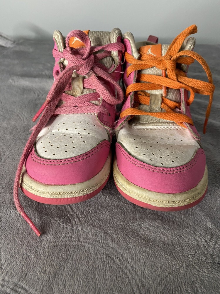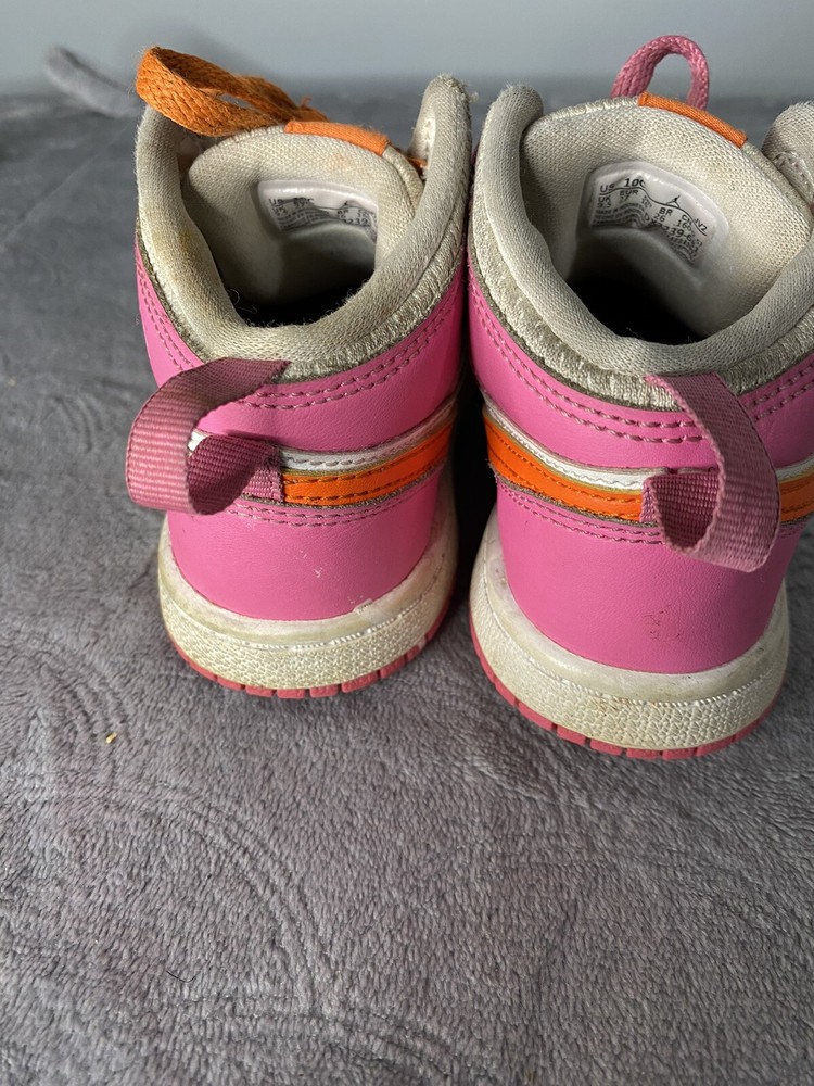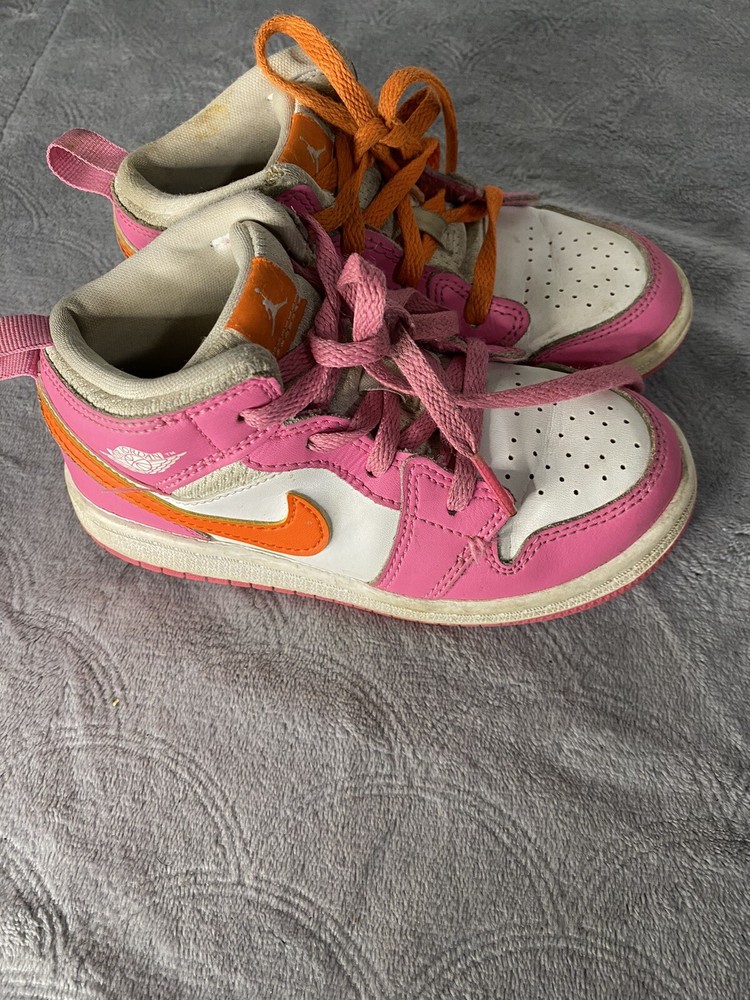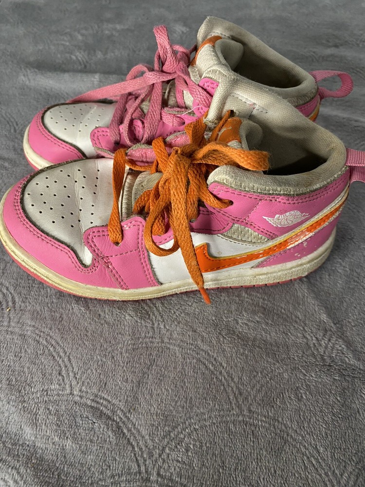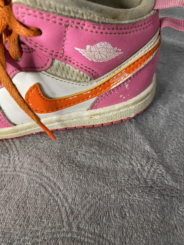 Elevate your little one's sneaker game with these Air Jordan 1 Mid 'Pinksicle Orange' toddler shoes. Featuring a colorful colorblock pattern and the iconic Jordan logo, these shoes are the perfect blend of retro and sports style. The lace-up closure ensures a secure fit, while the cushioned and comfortable features make them ideal for walking, school, and even basketball. Crafted with high-quality leather and foam insole material, these shoes are built to last. The rubber outsole provides excellent traction, making them perfect for any activity. Available in US shoe size 10C, these Air Jordan 1 Mid sneakers are a must-have for any little sneakerhead.