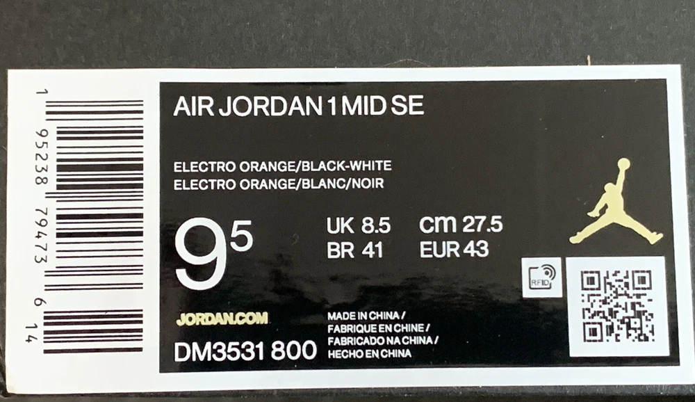 Air Jordan Mid 1 SE, Men's Size 9.5, Electro Orange, Nike DM3531 800 NEW WITH BOX! DEADSTOCK! Fast shipping from Canada....