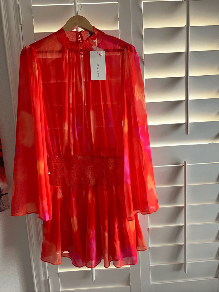 This vibrant orange and pink dress is absolutely stunning—the high collar and retro 70s mod style make it a standout piece for spring! The fit is perfect (size 4 with a little stretch), and the NWT condition is a bonus. Ideal for Easter brunch or any sunny outing—so cheerful and fun!