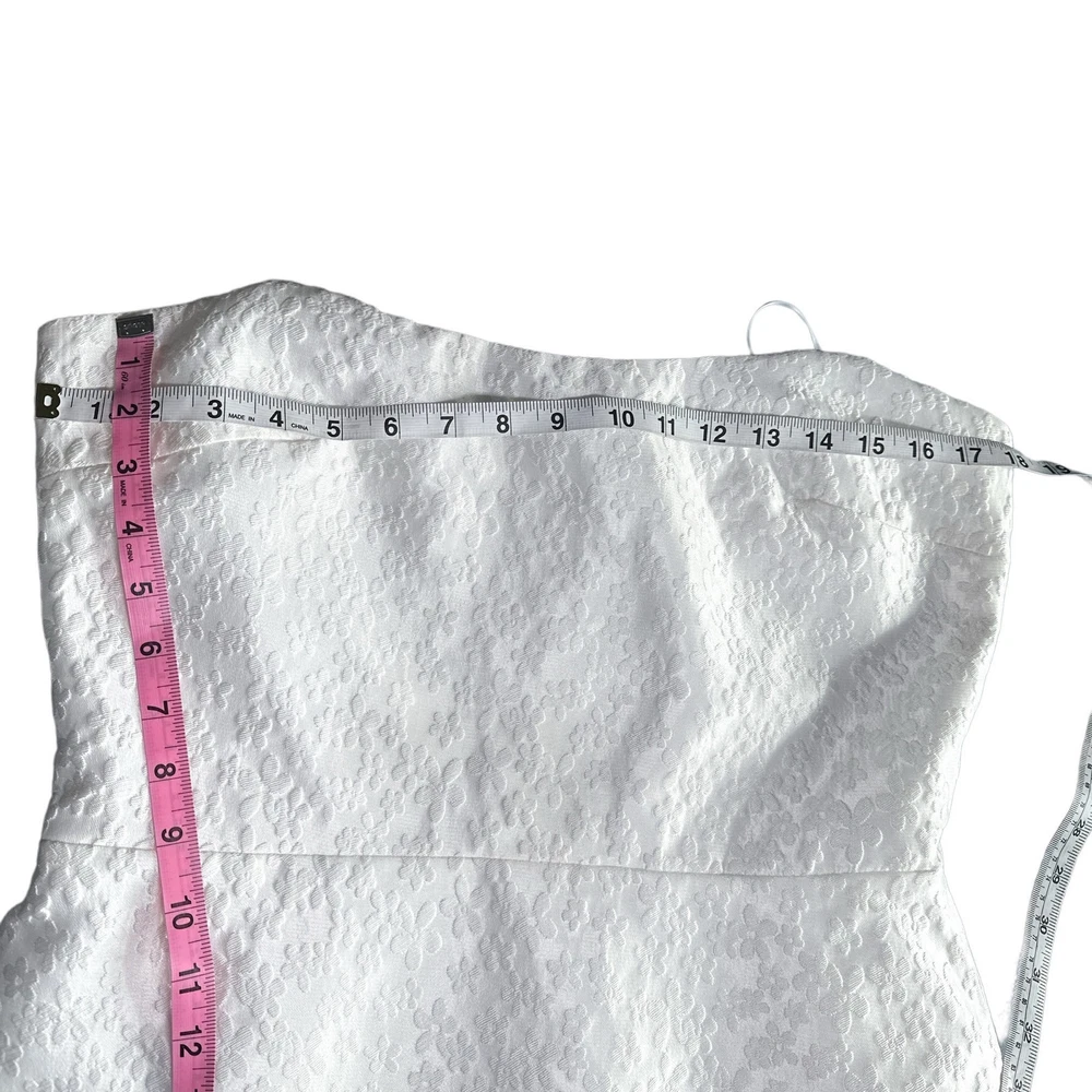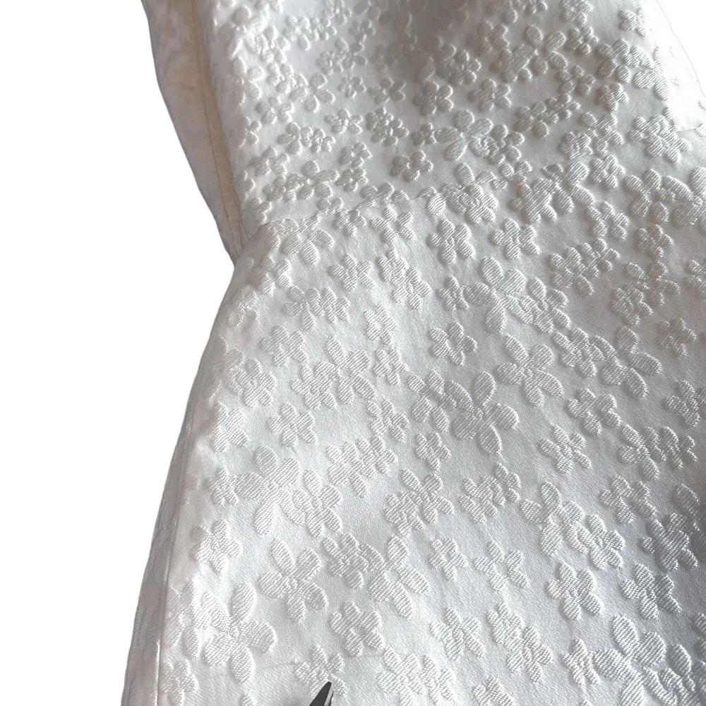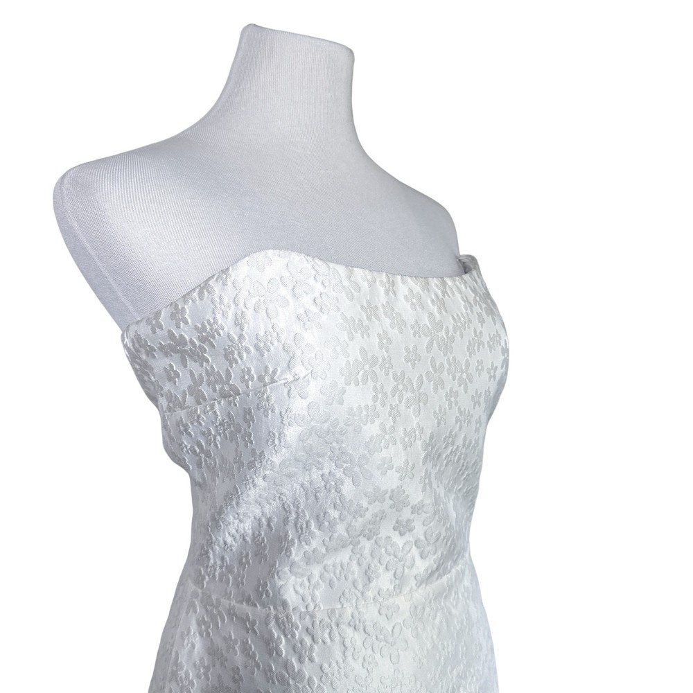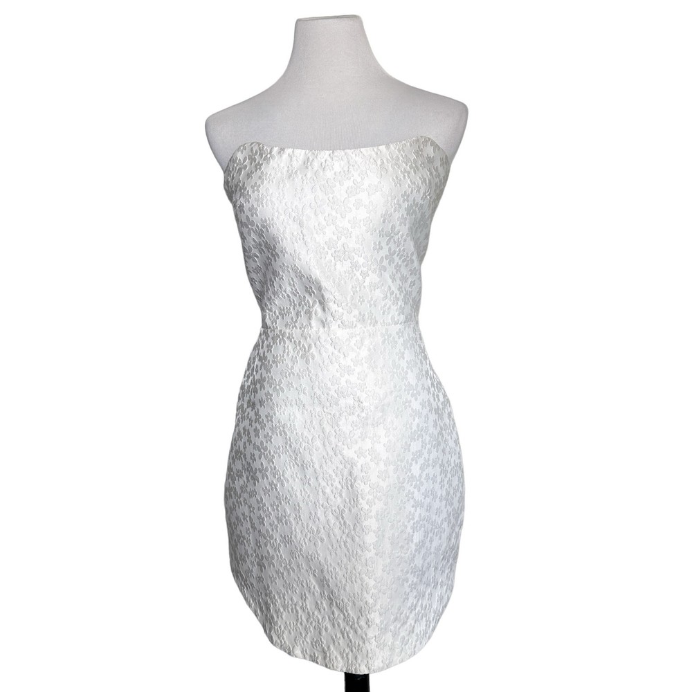 <![CDATA[<div>Beautiful jacquard embossed floral print all over; sleeveless and strapless mini dress with rounded hem slight heart shape neckline; zippered back 70% polyester 30% nylon COLOR: Bellis - all over solid white SIZE: Large CONDITION: NWT - new with tags FLAWS: Belt not included; a small grey thread line on side of skirt. It is very faint but still worth notating (last photo) TAGS: bridal wedding special event shower party night out date occasion cocktail bride graduation spring summer fall winter mini holiday travel traveling resort resortwear wear beach beachy trendy trending brand influencer blogger fav favorite *If provided, all measurements are approximate* Check out more of our premium brands at great prices!