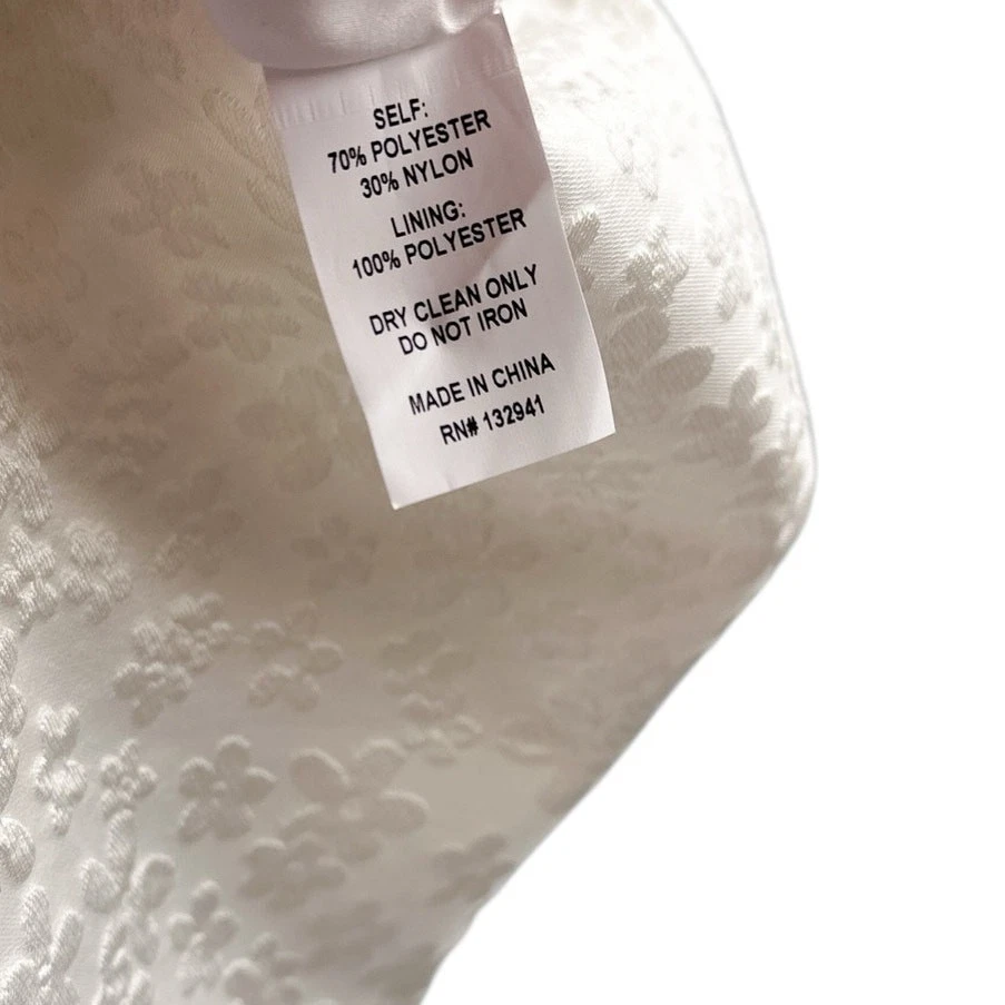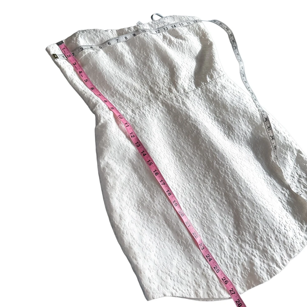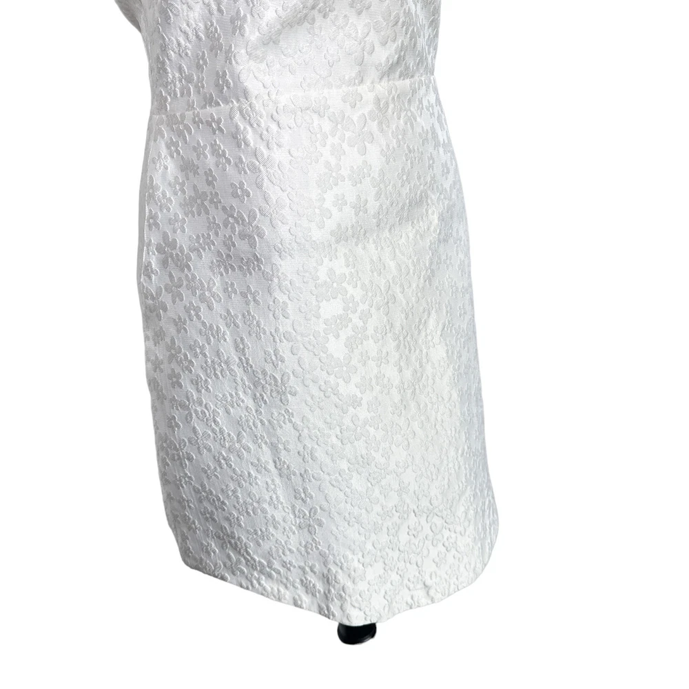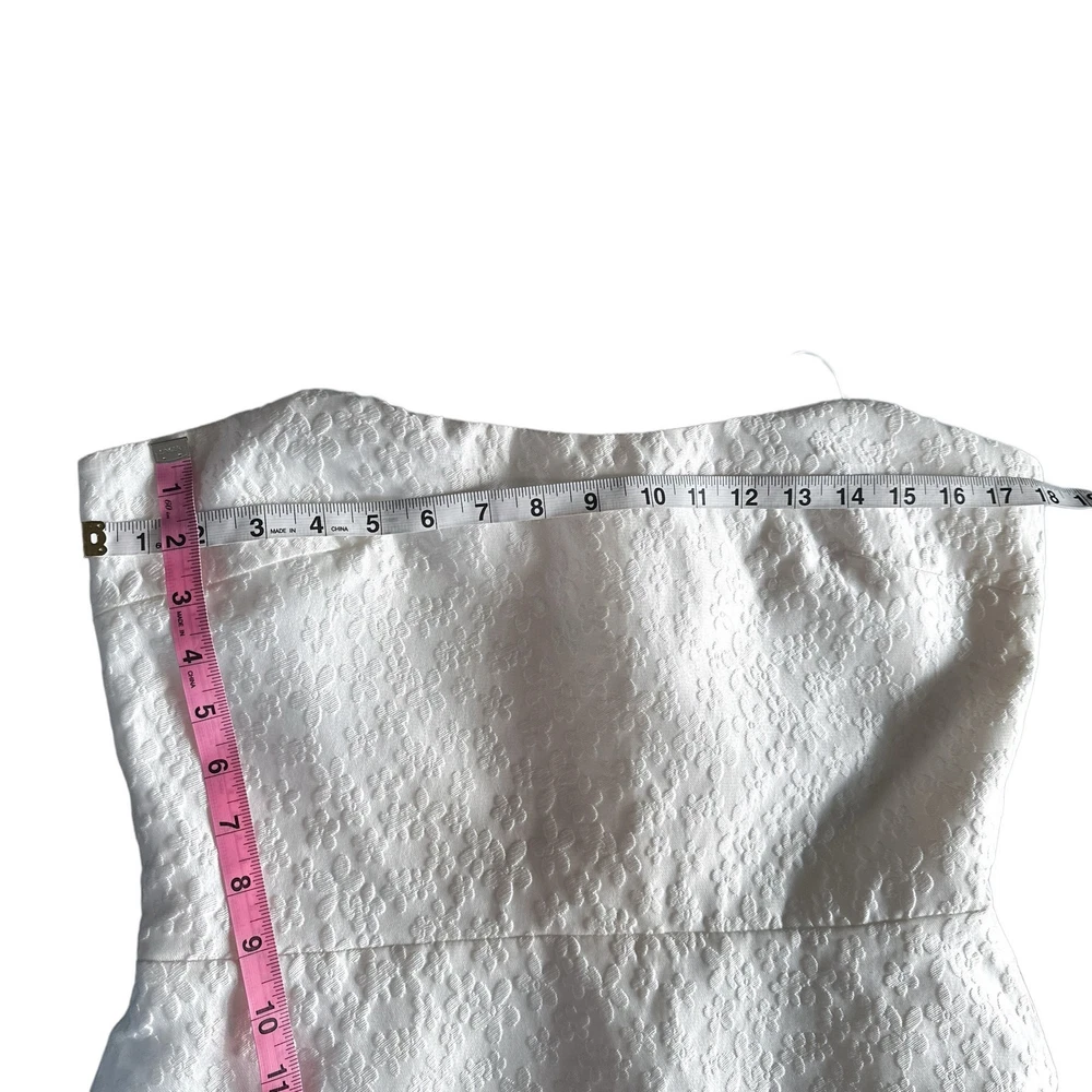 <![CDATA[<div>Beautiful jacquard embossed floral print all over; sleeveless and strapless mini dress with rounded hem slight heart shape neckline; zippered back 70% polyester 30% nylon COLOR: Bellis - all over solid white SIZE: Large CONDITION: NWT - new with tags FLAWS: Belt not included; a small grey thread line on side of skirt. It is very faint but still worth notating (last photo) TAGS: bridal wedding special event shower party night out date occasion cocktail bride graduation spring summer fall winter mini holiday travel traveling resort resortwear wear beach beachy trendy trending brand influencer blogger fav favorite *If provided, all measurements are approximate* Check out more of our premium brands at great prices!