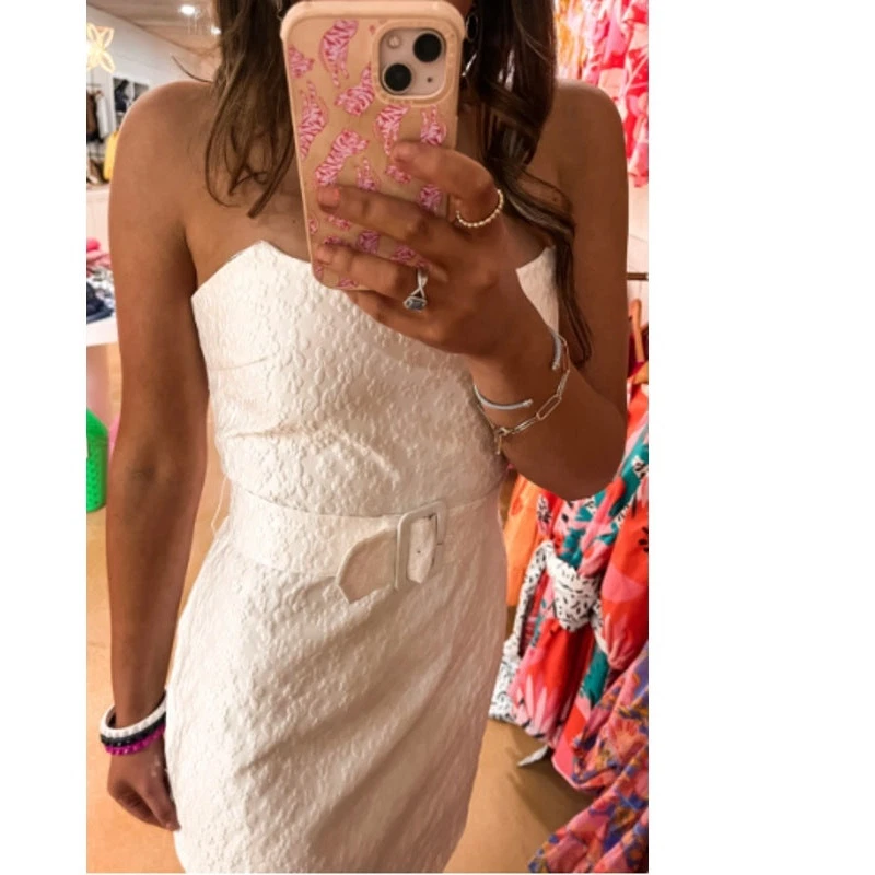 Absolutely stunning dress with a gorgeous jacquard floral texture—perfect for weddings, dates, or special occasions! The strapless design and heart-shaped neckline add elegance, while the mini length keeps it fun and flirty. Love the solid white color—so versatile! Only flaw is a barely noticeable grey thread line, but it’s still flawless in person. No belt included, but it doesn’t need one to shine. Fits true to size and feels luxurious. A must-have for any stylish event!