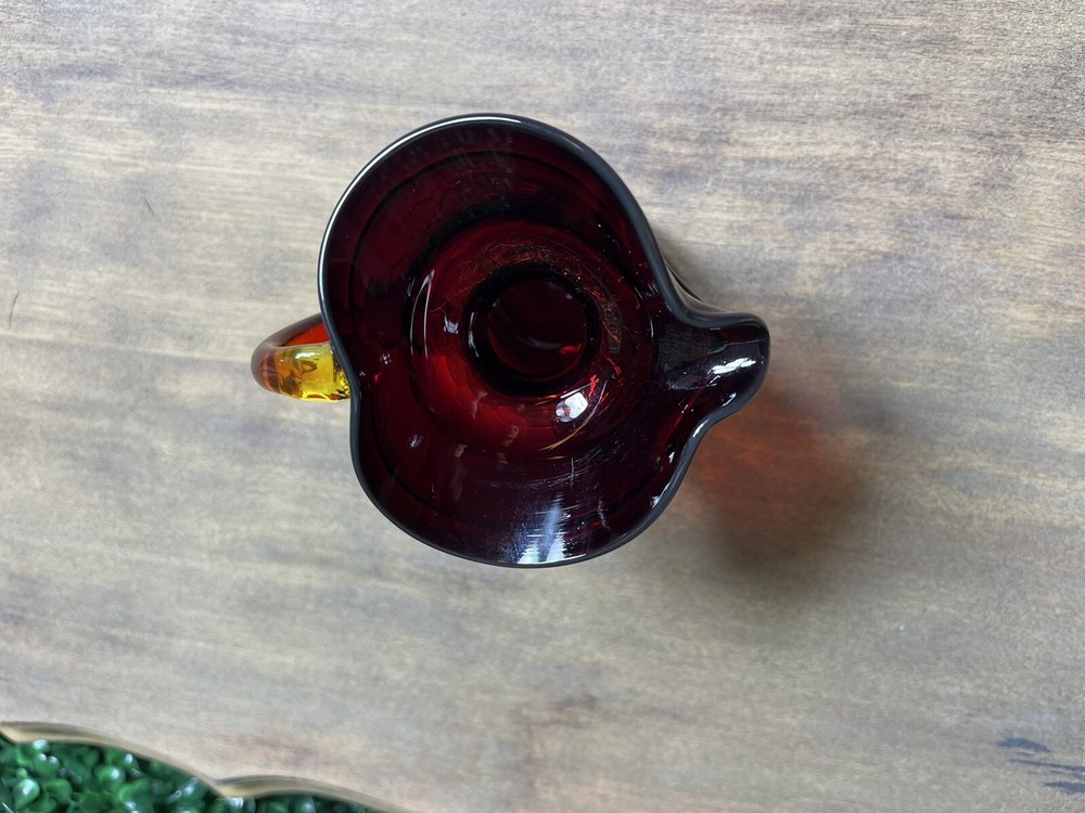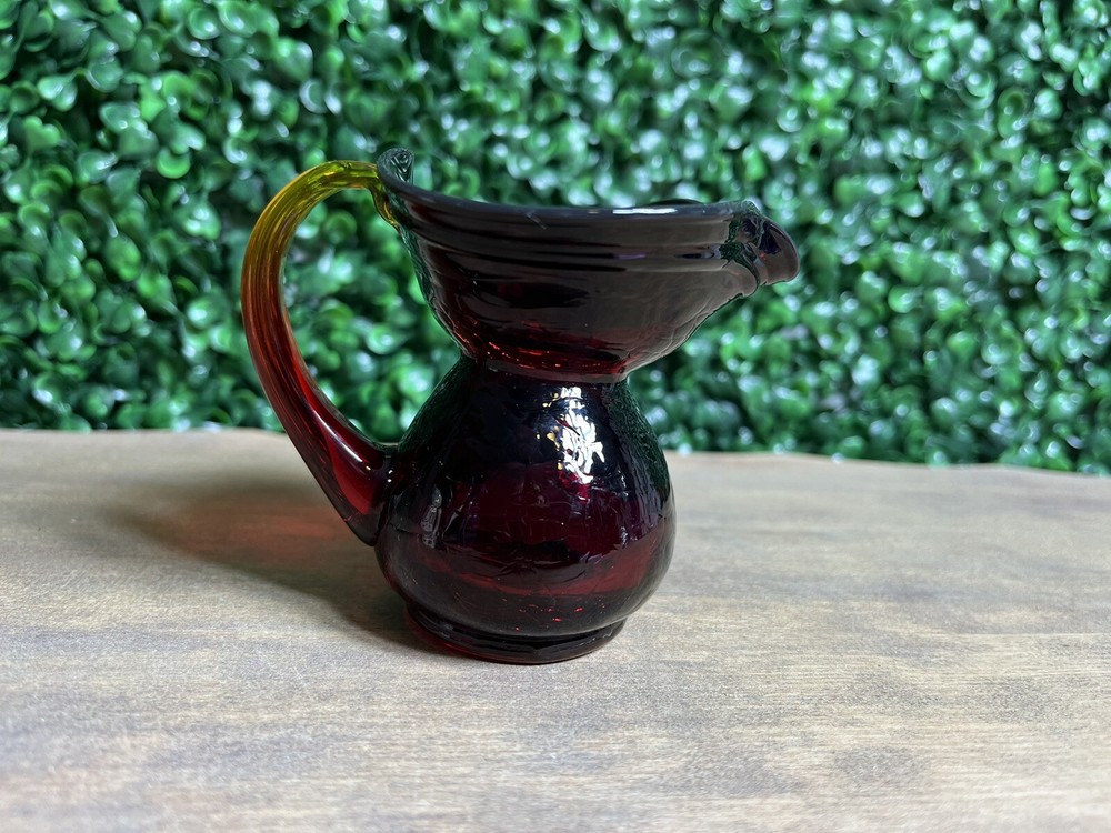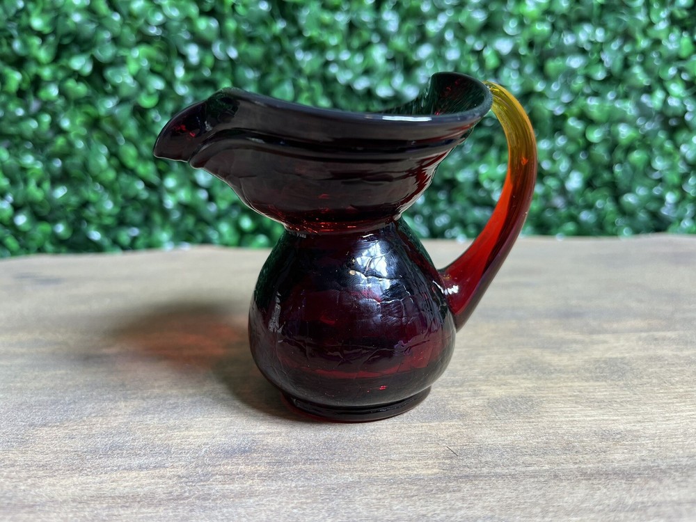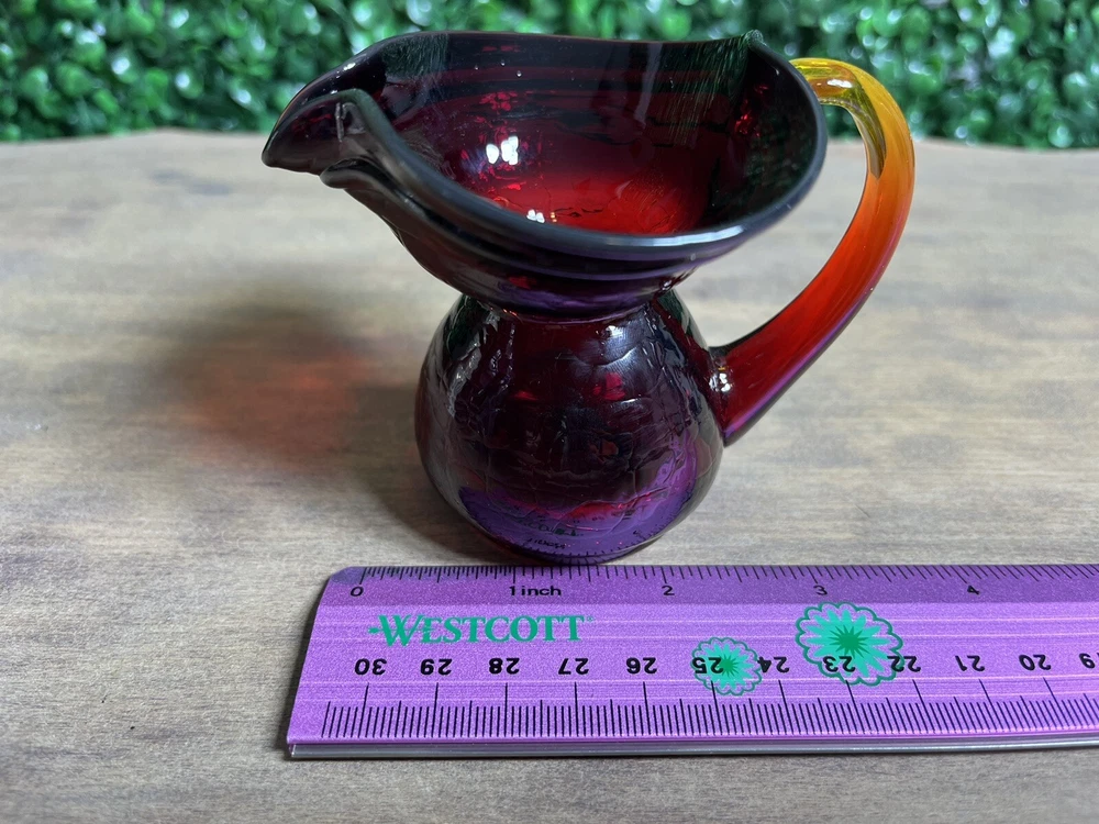 Amberina Crackle Glass Miniature Pitcher Orange Yellow 3” EUC.