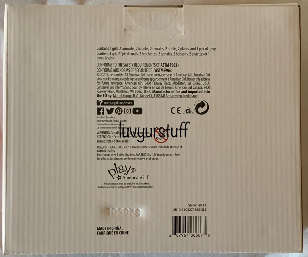 After a long day in the waves, Joss and her surf crew are hungry! They can cook up a delicious meal right on the beach with this set. It includes: A portable grill with color-change technology that “cooks” the food—they get grill marks after being exposed to the special lighting inside! It has legs that fold up and side tables that detach so it fits in the surf bus. A pair of tongs to remove the food from the grill Two corncobs that get grill marks when exposed to the special lighting Two color-change kabobs that can be “cooked” on the grill Two tamales that change color to look charred when they’re on the grill Two beach drinks with straws to cool down Two plates with multicolored artwork Requires 3 AAA Batteries Please ask any questions prior to your purchase. Thanks!