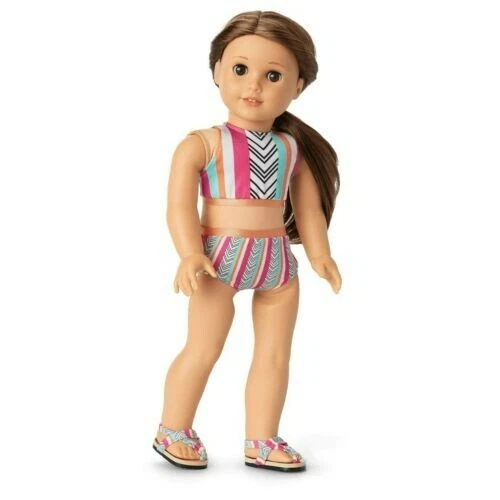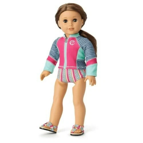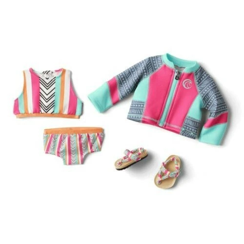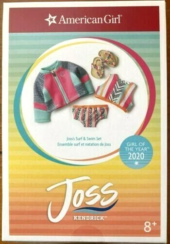 Joss's Surf and Swim Set!!! Brand NEW-Never Displayed!!! SHIPS SAME DAY Pet Free Smoke Free JOSS DOLL NOT INCLUDED!!! ~ Purchased Directly From American Girl Store or Catalog in the United States~ NOT A RETURNS OR DEFECTS Or X's ! ~ Smoke Free Pet Free Home! S HIPS UPS GROUND with TRACKING+ Insurance American Girl item is Joss's Surf & Swim Set. It is BRAND NEW and SEALED in its original box. Joss Kendrick was the 2020 Girl of the Year. Her collection is limited, and this set is sold out and retired. Fits any 18" American Girl doll such as Courtney, Kira, Maryellen, Samantha, Truly Me, etc. as well as the Our Generation dolls. DOLL NOT INCLUDED!!! Set includes: -High-neck swimsuit top and bottom with a geometric pattern -Zip-front wetsuit jacket -Paid of sandals that match swimsuit