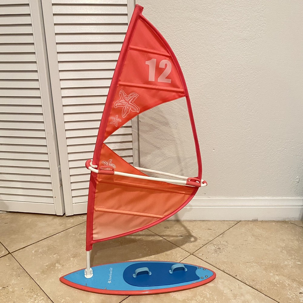 American Girl Summer Sailboard Set Retired Joss Jess Lea. Retired American Girl Sailboard Set also known as the Summer Sailboard Set. It has multiple scuff on the board as shown in pictures, but they did not affect the functionality of the item. It will arrive unassembled. Fits 18” dolls such as Our Generation, My Life As, Journey Girls, etc. Perfectly matches Kanani, Jess, Lea, Joss’s collections.