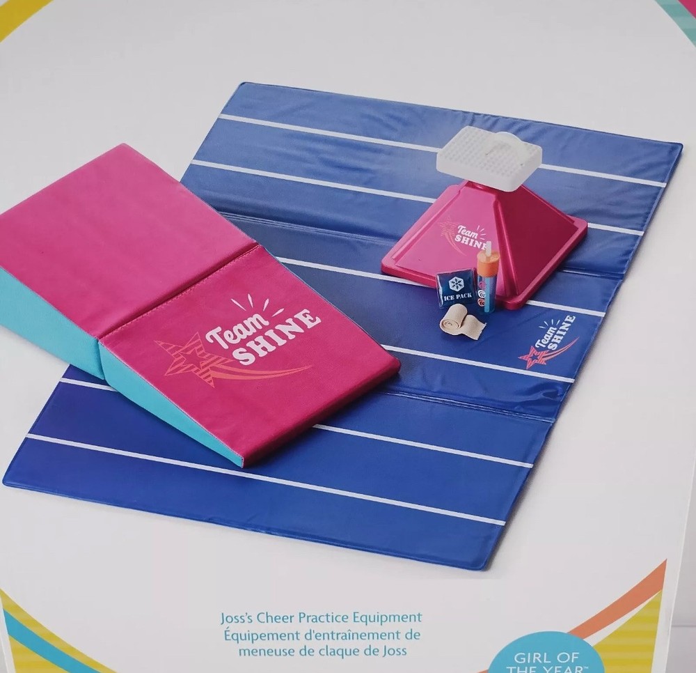 The American Girl Joss Cheer Practice Equipment is a doll playset designed for 18-inch American Girl dolls.