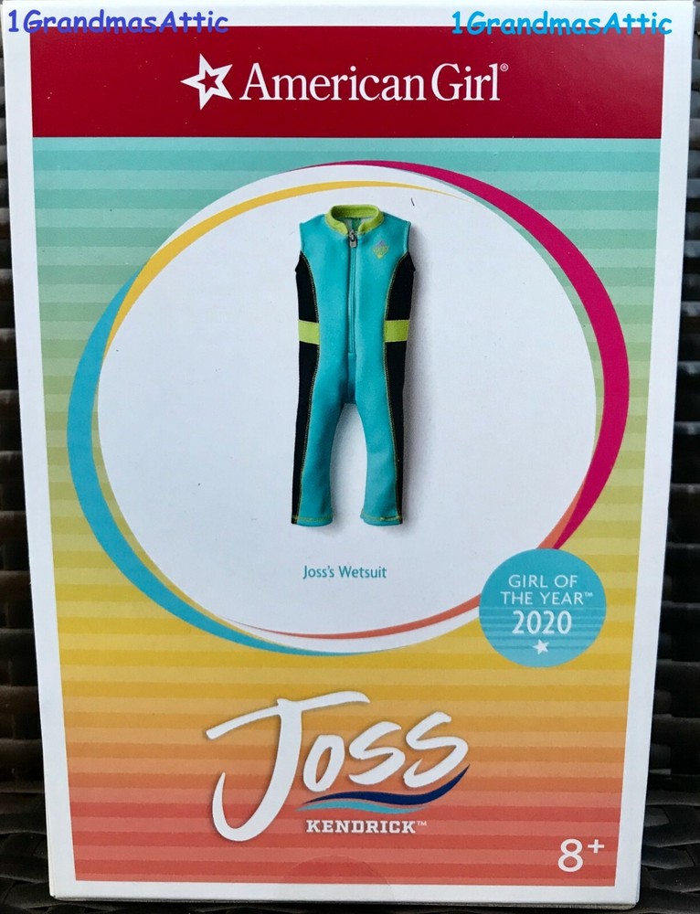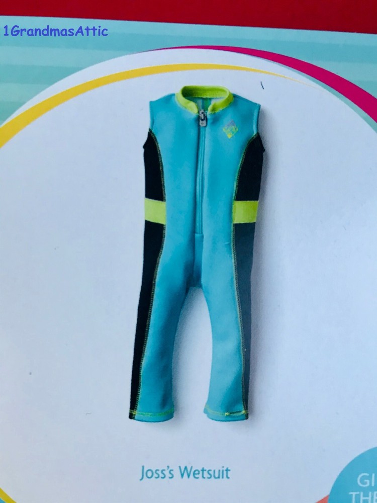American Girl Joss's Wetsuit Joss wears this sleeveless zip-front wetsuit when she, her friend Sofia, and her brothers surf the big, cold waves at Shadow Rock . Doll sold separately. DO NOT PLACE DOLL IN WATER! Your very special girl will just love this brand new Outfit. It has never been removed from the box. Your payment is due within 3 days of purchase. I love to combine items for shipping. I charge an additional $2.00 per item, the first item being the one with the highest shipping cost. I ship within 1 day of receiving payment. I am pleased to ship to APO's. I use Delivery Confirmation with All Shipments within the US. I do accept returns, but only if the items is defective. I do not reimburse for shipping, eBay or PayPal fees. Item must be returned in the same condition it was shipped in. A 15% Restocking Charge will be charged. Please check out my other goodies. I am always adding to The Store. Don't forget to make me a Favorite Seller so you can receive my newsletter. I will be adding lots of Retired and Hard to Find items throughout the year, don't miss out on them! International Buyers, please contact me for Shipping Rates if they do not appear. I use International for shipping. I do combine shipments, so let me know when you are finished shopping and I will send a revised Invoice. All items come from a Smoke Free Environment. Thank you for looking! Have a Bright Day! Track Page Views With Auctiva's FREE Counter