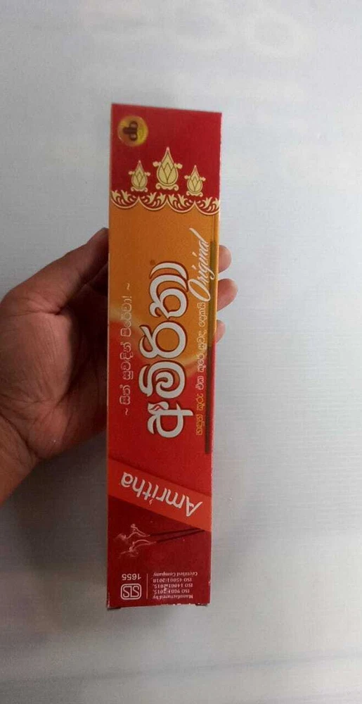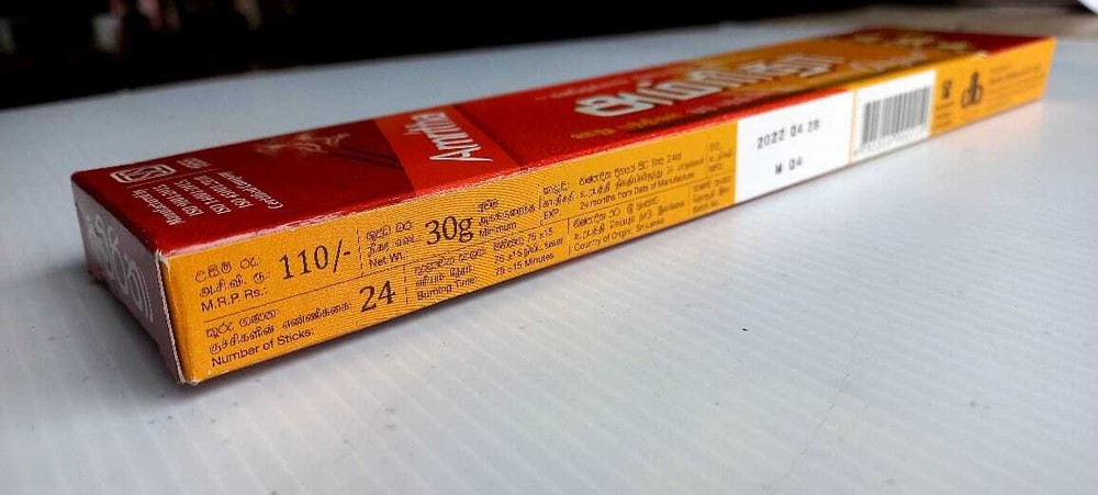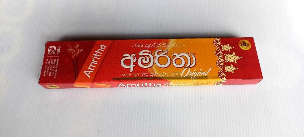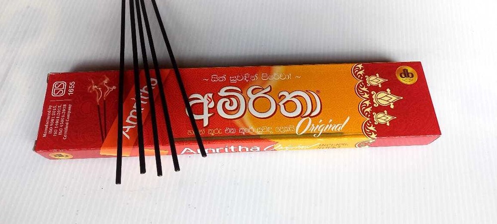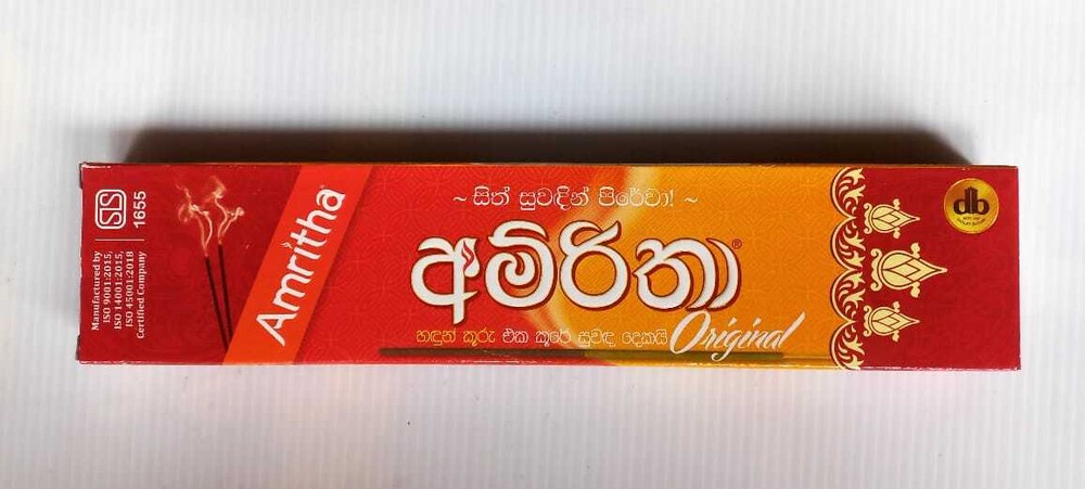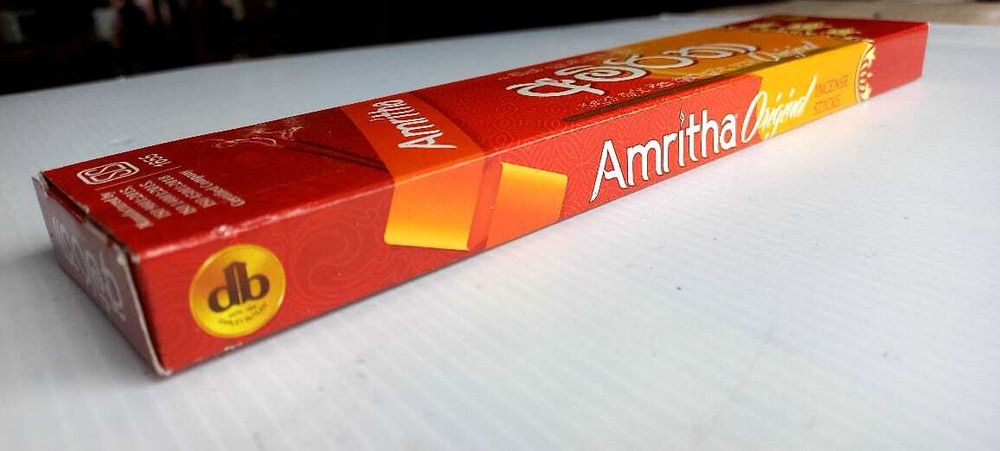 Amritha Natural High Quality Fragrance Incense Joss 24 Sticks Aromatherapy Description Amritha Products Are Made of the Highest Quality Raw Materials. You Get Pure Incense,Not Burning Wood. Improve Any Environment With These Amazing Aromas with Just a Quick Light up of These Incense Sticks.Each Box has 24 Sticks, Weight 30g.One of the Classic Incense Brands Amritha Incense is Full of Fragrance. Item Specification Type - Incense Sticks Item Weight - 30g Occasion - All Occasion Country/Region of Manufacture - Sri Lanka How to burn incense sticks properly Place your incense stick in an appropriate incense burner that will collect the ash as it falls. Trim the stick as necessary to ensure a proper fit. Light the end of the incense stick until a flame is established. Gently extinguish by blowing or fanning out the flame. Package Include One Incense Box (24 Sticks)