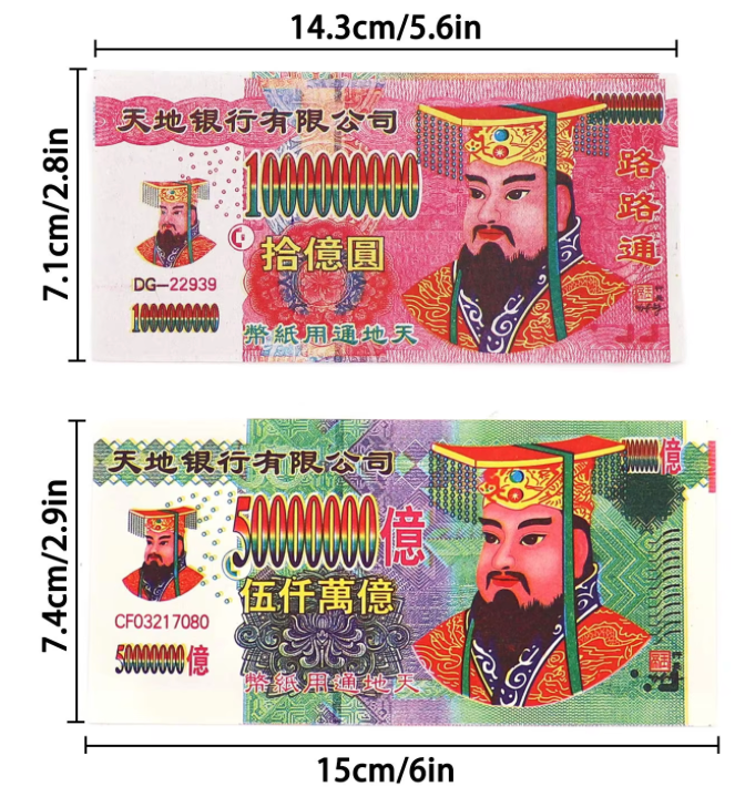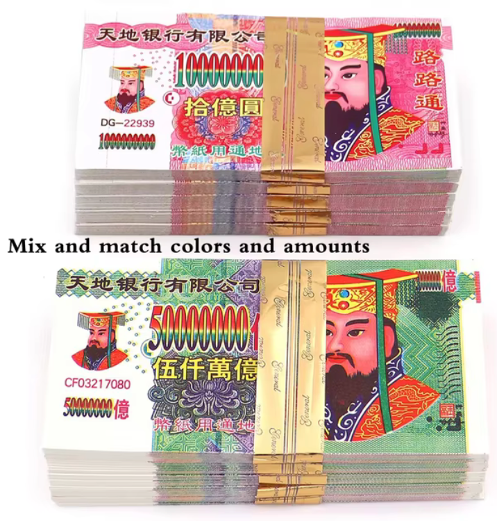 ·Ancestor Money 100-500Pcs Joss Paper Hell Bank Notes Sacrificial Offerings Connection with Your Ancestor Bring Good FortunAncestor money has synonyms known as spirit money, Joss paper, hell money, heaven notes, etc. The desired vision was that the most beloved family members who passed away can use this "note" in another world to make a better living and seek love again. ·In worldwide culture, we burn joss paper for ancestors on special holidays.Take it for granted to use : Funerals, Tomb-sweeping day, Anniversary of ancestor's death, All Souls Day, Obon Festival. The day you concerning, bone-deep missing and mourning for them. ·Not only living people can perceive and deliver, but also those spirits clearly sensed by ancestor money burners. The whole process is actually an spiritual information exchange. Such communication and fund donation to ancestor can be viewed as a blessing . ·Packing well : a bundle of 100 sheets.(color and amounts mix and match, not affect burn) Each sheet measures about : 15x7.5 cm. This currency is very colorful and bright in color. very easy to be burnt completely. Please note:Paper money is not legal tender currency issued by any bank or government institution and holds no cash value. Theme Buddhism Style Folk Art Origin Mainland China Name Ancestor Money Feature1 Joss Paper Feature2 Lucky Money Feature3 Sacrificial Offerings Feature4 Hell Bank Notes