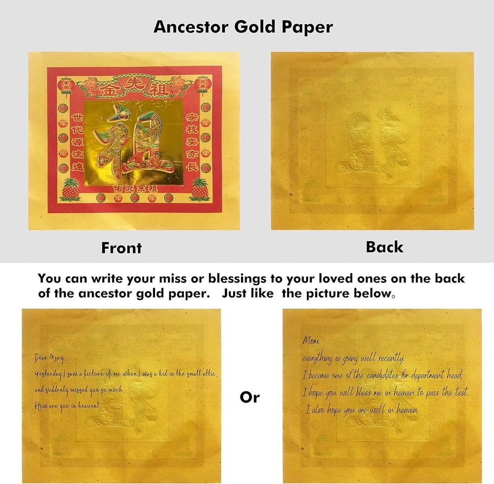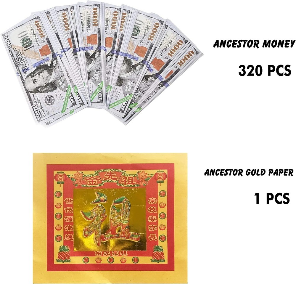 [Package and size]-Package: 4 bundles, 80 sheets per bundle. The size of each piece of paper is approximately: 15.5x7.2 cm/6.1x2.8 inches. This currency is very colorful and colorful. Good quality and easy to burn completely. [Use occasions] Applicable to funerals, Tomb-sweeping Festival, Patriarch's Birthday, Zhongyuan Festival (July 15), All Souls Day, Tomb-sweeping Festival (April 5). The day you dreamed of them. The day I miss them. [Method of use]1. When using it, you can write down the names of your relatives on the back of the yellow ancestor paper. In this way, your ancestors' money will be directly given to these relatives and will not be misidentified by others! You can also write down your current situation or what kind of help you want from your ancestors! 2. Burn ancestral money and yellow ancestral paper together, and meditate on the words that you want to be with your loved ones ! [Note] 1. Paper currency is not legal tender issued by any bank or government agency, and has no cash value. They are also usually burned as a prayer to ancestors and pray for prosperity and good fortune. 2. Pay attention to fire prevention when burning the incense paper money. When the sacrifice burns, there is a little smell. Please burn it in a large pot or a fire-resistant pot in the vent or outdoors, and leave after burning. On Dec 26, 2024 at 23:36:49 PST, seller added the following information: