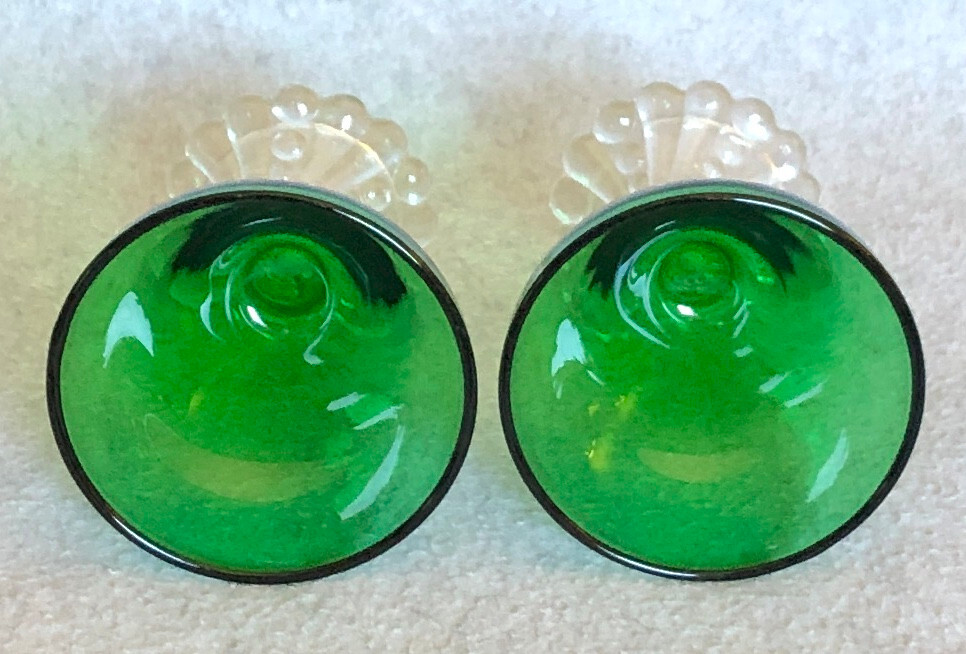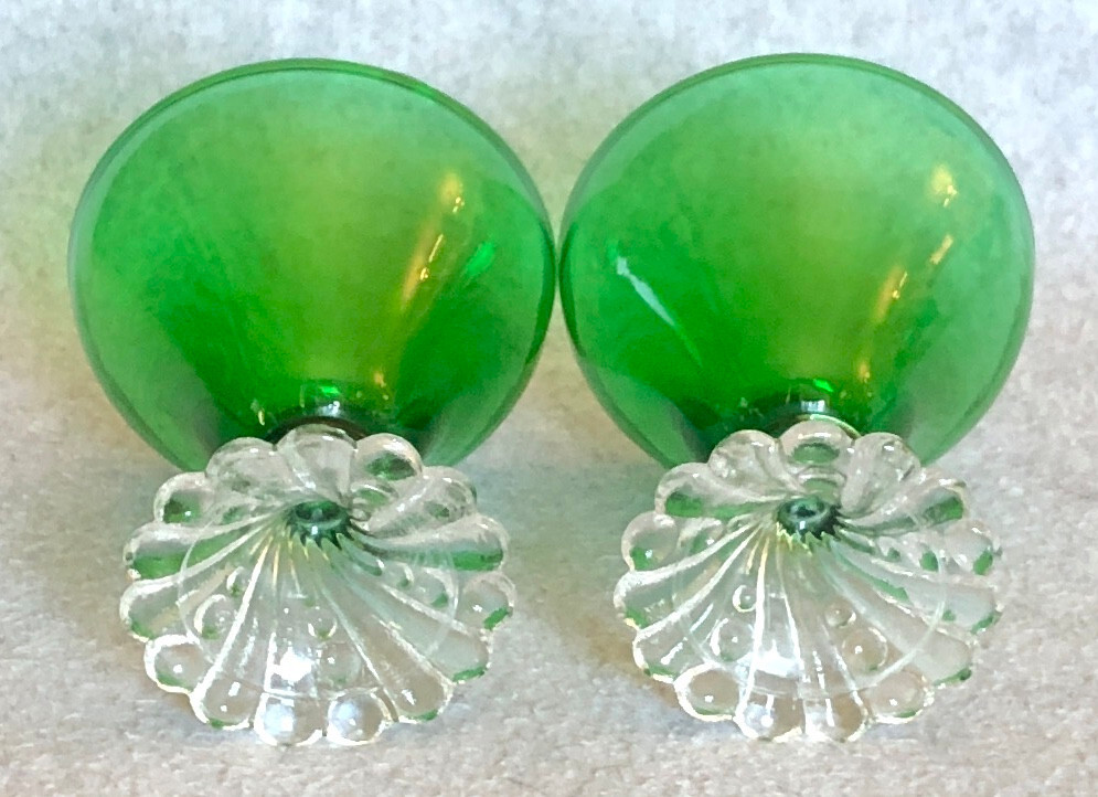 Up for sale is a pair (2) of Anchor Hocking Glass Company 'Inspiration' small stemmed sherbet bowls each measuring 3 & 5/8" high by 3" wide at the rim. These sherbets, made in the 1950's, are in excellent (possibly unused) condition with no chips, cracks, or scratches. This pattern is also sometimes called 'Boopie' or 'Burple' by collectors.
