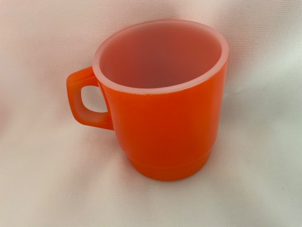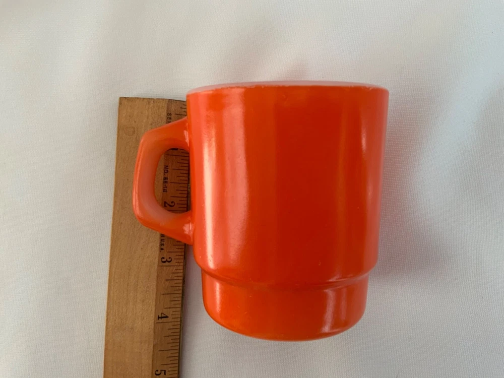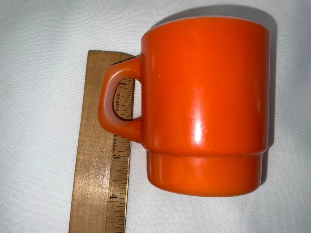 This retro mug is a total gem! The vibrant persimmon orange color adds a fun pop to my morning coffee routine. It's in great condition for being preowned—no chips or cracks, just charming vintage character. The perfect size for a cozy cup, and the sturdy Anchor Hocking quality means it'll last. Love the nostalgic vibe!