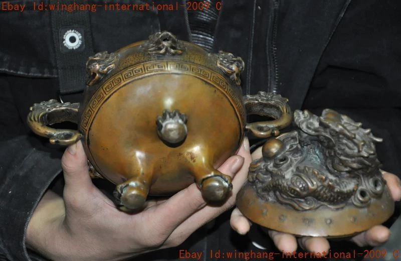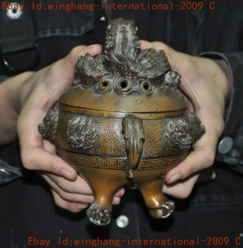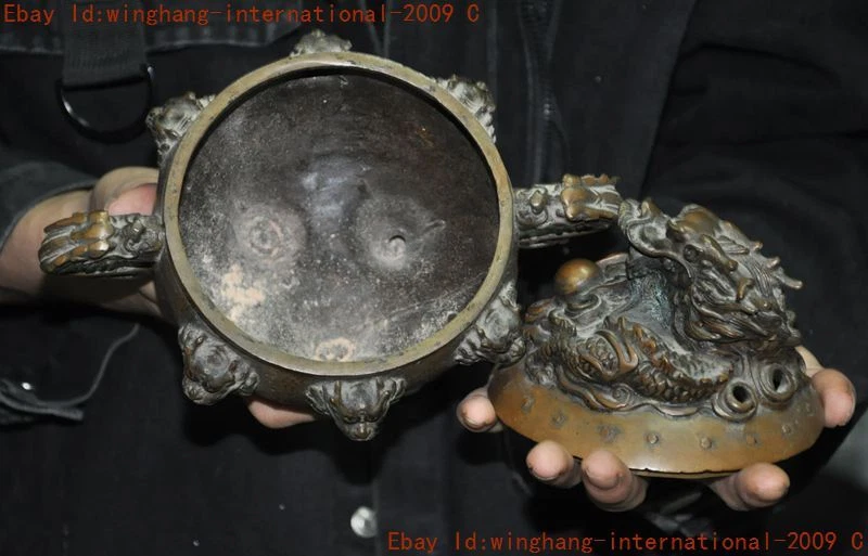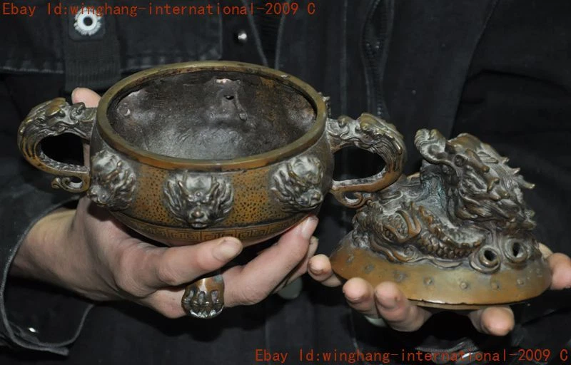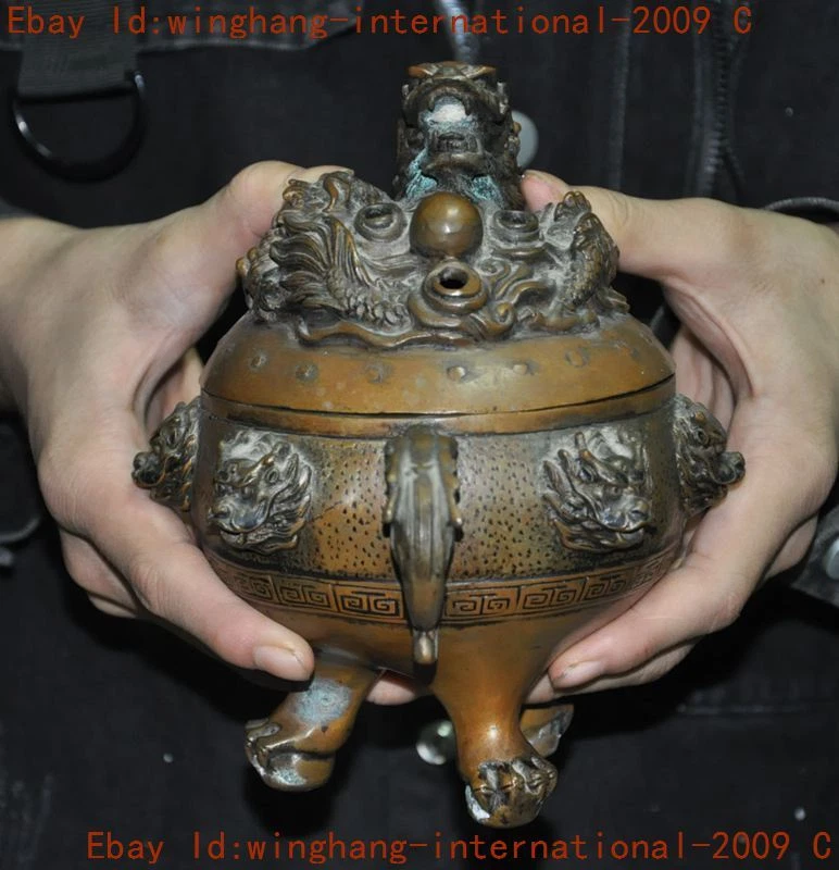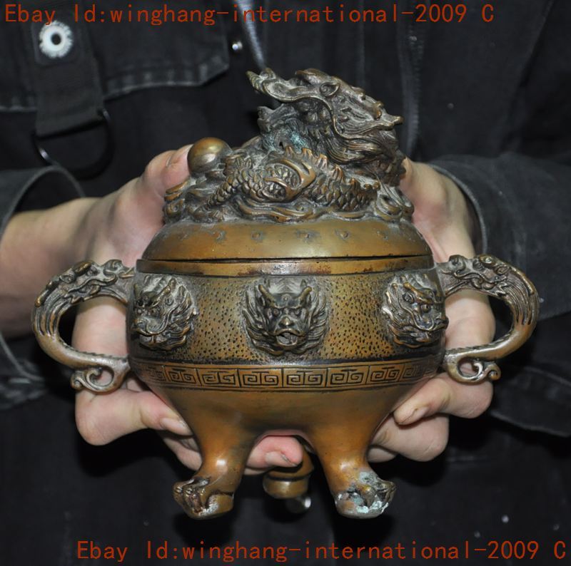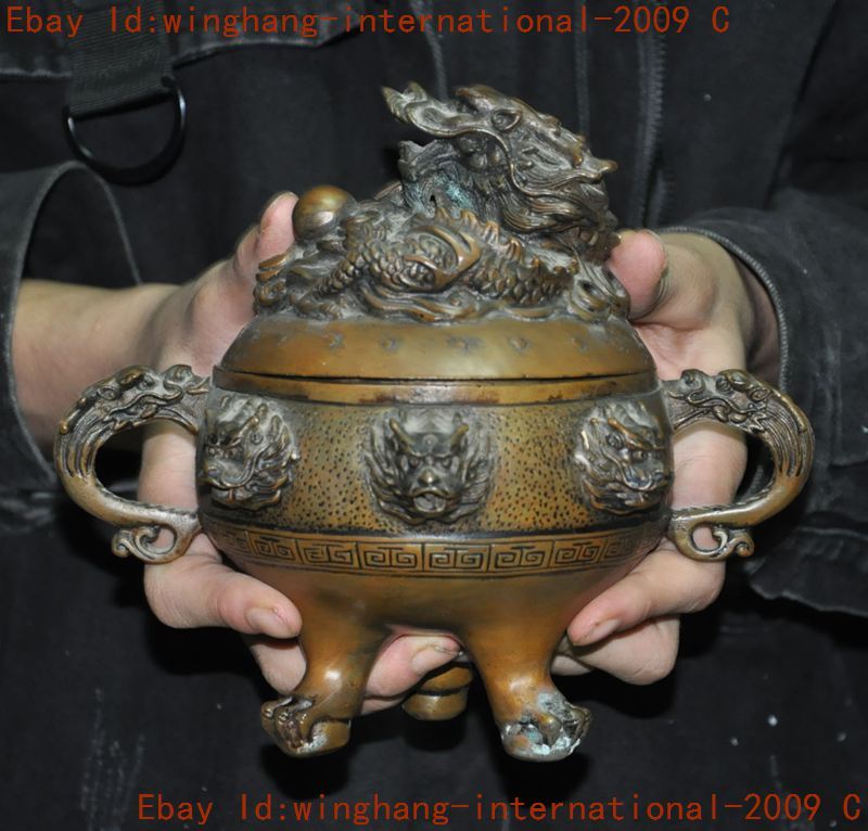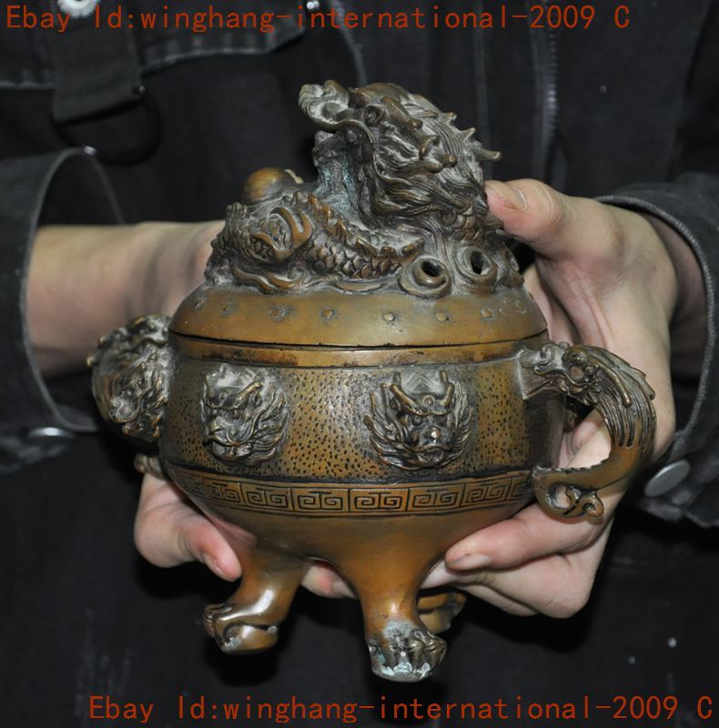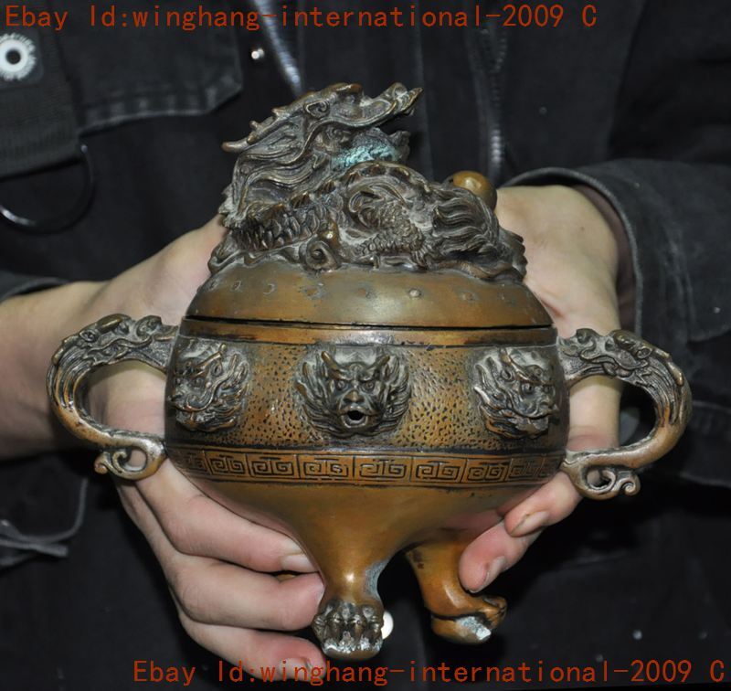 Here is an Ancient China Buddhism temple bronze dragon joss Incense burner Censer statue , As you can see the image, It is in good condition, and was created by skilled craftsmen in traditional style with fine handcrafts . This is a great piece of valuable collection, a valuable personal alter or a very good present. the handwork is very fine with incredible detailing. Don't miss out this chance to get it .Wish you good luck! Size: Height : 7.2 inch .Long: 7.6 inch . breadth: 4.4 inch Size: Height :18 CM .Long: 19 CM . breadth:11 CM Weight: 1.8 KG----included the weight of packing materials Materials : bronze Condition: Good condition Origin: China Shipping cost by Air Mail / EMS (7-15 days ) : $Free C.I.CJ Z we only accept pay pal if you have any problems on payment,please inform us via e bay message . 1.We ship regularly Monday to Saturday (Beijing Time) and will ship your items within 1-2 days upon payment received. If we can not ship your item on time for some special reason, we will inform you via e bay message. 2.We are not responsible for nor can we offer any specific adv ices on import fees, duty, customs, VAT or taxes that you may have to pay when your order arrives. 3.We ship the items according to your Pay pal address except the special notes from buyers! Be sure that your Pay pal address is correct when you buy the items in e bay. We do not take responsibility for item loss due to wrong address. 4.Estimated delivery time: Shipping may be influenced by holidays, events and some other uncertainties. If you dislike the seemingly long shipping time, please think carefully to bid or buy the item. We do not want to get a negative or neutral or low D S R score because of shipping time. If you have special demand on shipping time, please inform me via e bay message. We want to give you a happy shopping experience, when you are not satisfied with our products, please contact us on E BAY, we are responsible seller, we will solve your problem, please believe us,thanks! If you're in any way dissatisfied with your purchase, let me know through "MY MESSAGES" or "Ask Seller Questions" or our mailbox. We will solve it for you. We are committed to ensuring that you are completely satisfied with every transaction. 100% Satisfaction guaranteed ! We will reply your mail with in 24 hours normally. Sometimes have a little delay due to the weekends or holidays. If you can't get our mail after 48 hours, please check your spam or contact to us via E bay. In addition to contact us through eBay or you can send your message to our mailbox. Any question, please feel free to contact us, we will always do our best to serve you.