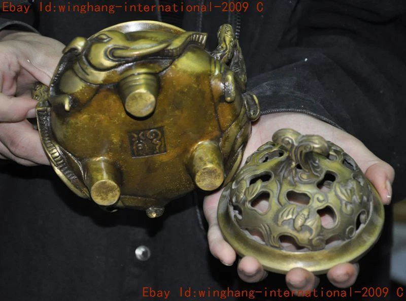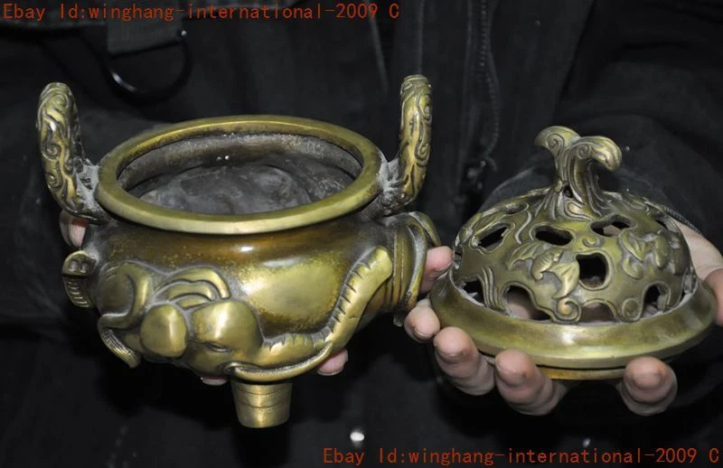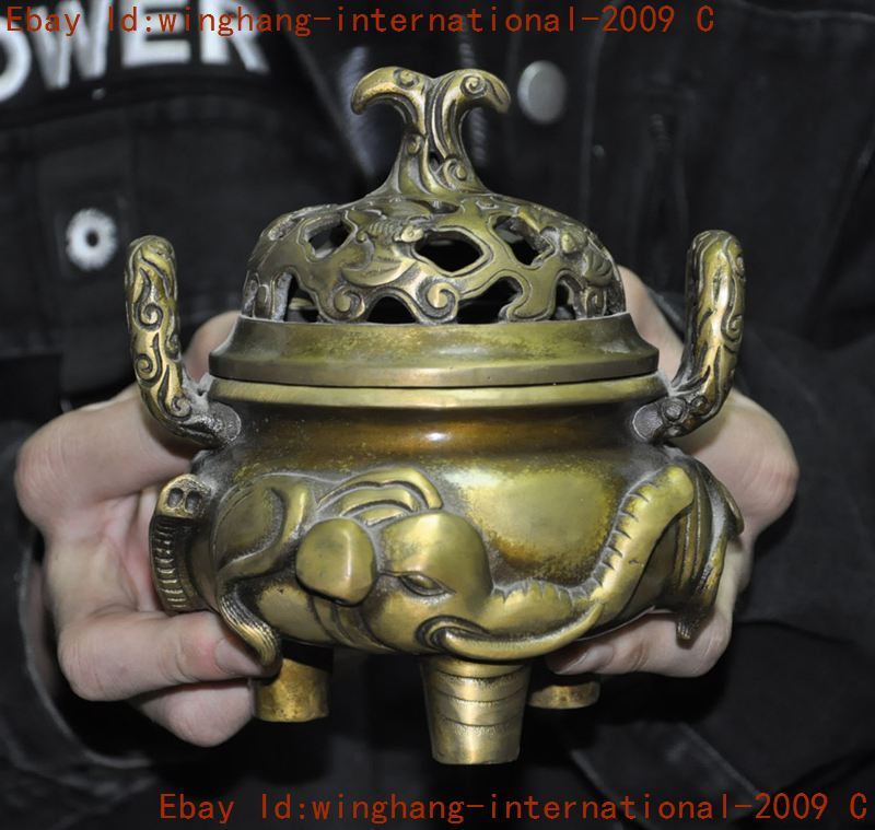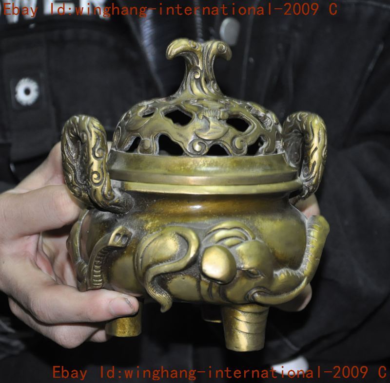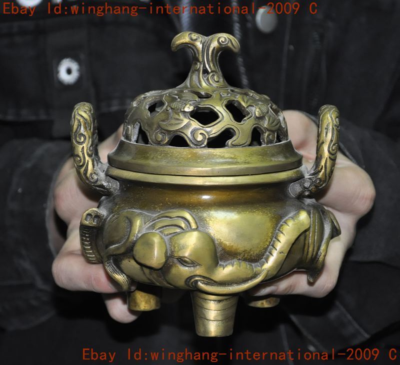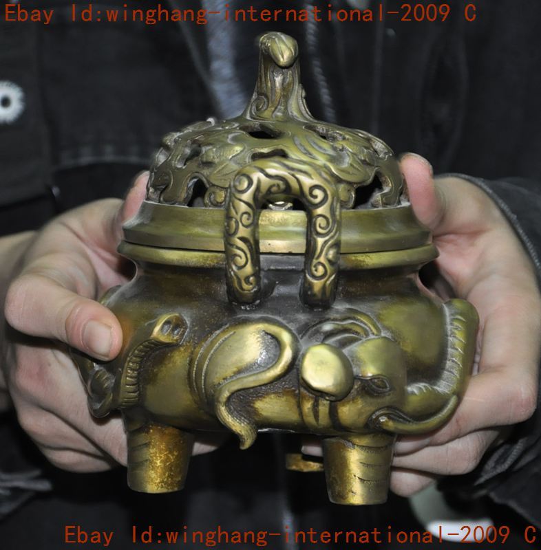 Here is an Ancient China Buddhism temple bronze elephant joss Incense burner Censer statue , As you can see the image, It is in good condition, and was created by skilled craftsmen in traditional style with fine handcrafts . This is a great piece of valuable collection, a valuable personal alter or a very good present. the handwork is very fine with incredible detailing. Don't miss out this chance to get it .Wish you good luck! Size: Height : 6 inch .Long: 5.4 inch . breadth: 4.8 inch Size: Height :15 CM .Long: 13.5 CM . breadth:12 CM Weight: 1.5 KG----included the weight of packing materials Materials : bronze Condition: Good condition Origin: China Shipping cost by Air Mail / EMS (7-15 days ) : $Free C.I.CJ Z we only accept pay pal if you have any problems on payment,please inform us via e bay message . 1.We ship regularly Monday to Saturday (Beijing Time) and will ship your items within 1-2 days upon payment received. If we can not ship your item on time for some special reason, we will inform you via e bay message. 2.We are not responsible for nor can we offer any specific adv ices on import fees, duty, customs, VAT or taxes that you may have to pay when your order arrives. 3.We ship the items according to your Pay pal address except the special notes from buyers! Be sure that your Pay pal address is correct when you buy the items in e bay. We do not take responsibility for item loss due to wrong address. 4.Estimated delivery time: Shipping may be influenced by holidays, events and some other uncertainties. If you dislike the seemingly long shipping time, please think carefully to bid or buy the item. We do not want to get a negative or neutral or low D S R score because of shipping time. If you have special demand on shipping time, please inform me via e bay message. We want to give you a happy shopping experience, when you are not satisfied with our products, please contact us on E BAY, we are responsible seller, we will solve your problem, please believe us,thanks! If you're in any way dissatisfied with your purchase, let me know through "MY MESSAGES" or "Ask Seller Questions" or our mailbox. We will solve it for you. We are committed to ensuring that you are completely satisfied with every transaction. 100% Satisfaction guaranteed ! We will reply your mail with in 24 hours normally. Sometimes have a little delay due to the weekends or holidays. If you can't get our mail after 48 hours, please check your spam or contact to us via E bay. In addition to contact us through eBay or you can send your message to our mailbox. Any question, please feel free to contact us, we will always do our best to serve you.