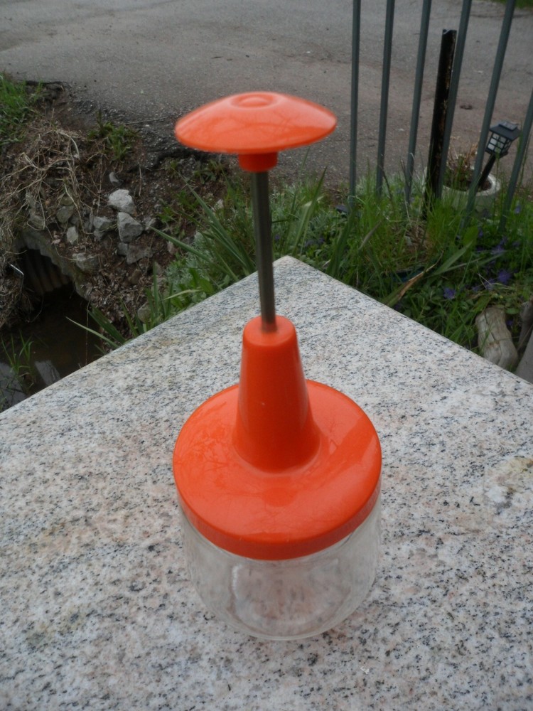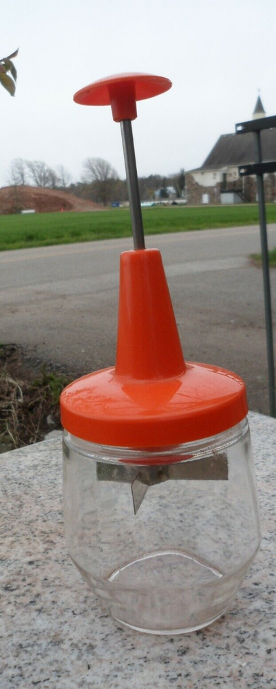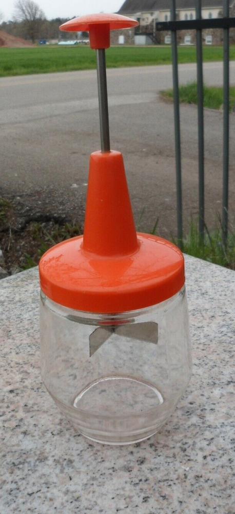 This nut chopper is a fantastic vintage find! The bright orange glass adds a fun pop of color to my kitchen, and it works perfectly for chopping nuts quickly. The mid-century design is so stylish, and I love that it's made in Canada—such great quality. It's in great condition for its age and looks adorable on my counter. Highly recommend for anyone who loves retro kitchen gadgets!