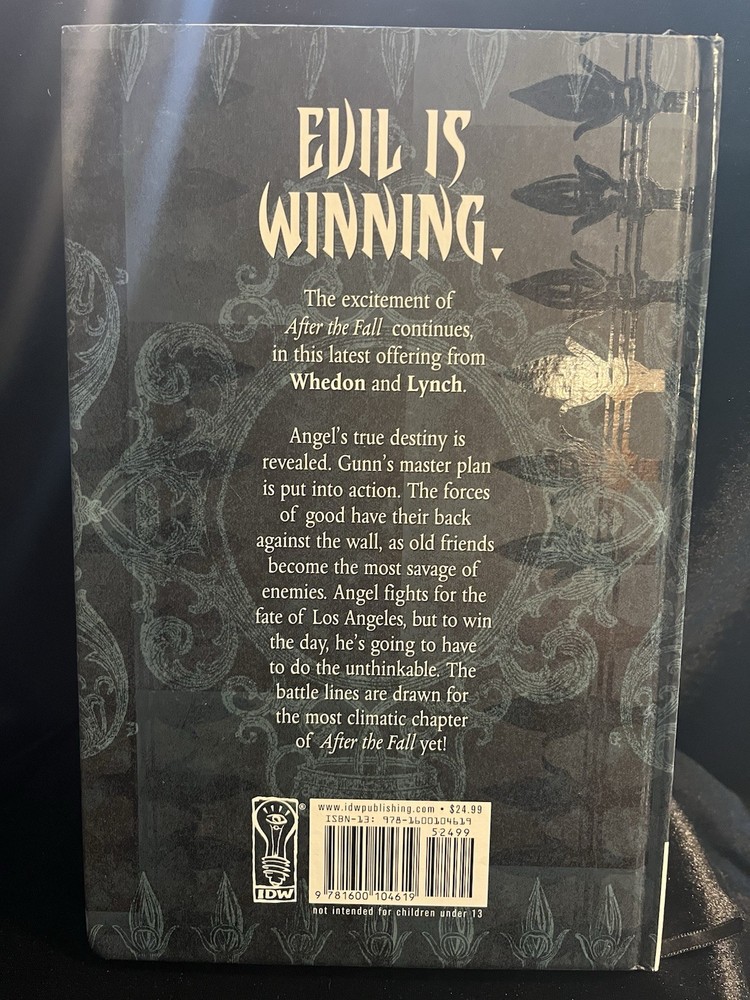 This volume of *Angel: After the Fall* is a must-have for fans! The story grips you with intense action and sharp writing from Lynch and Whedon. The hardcover feels premium, and the artwork is stunning. Found it in great condition—totally worth it for the price. Fast shipping and smooth transaction. Highly recommend adding this to your collection!