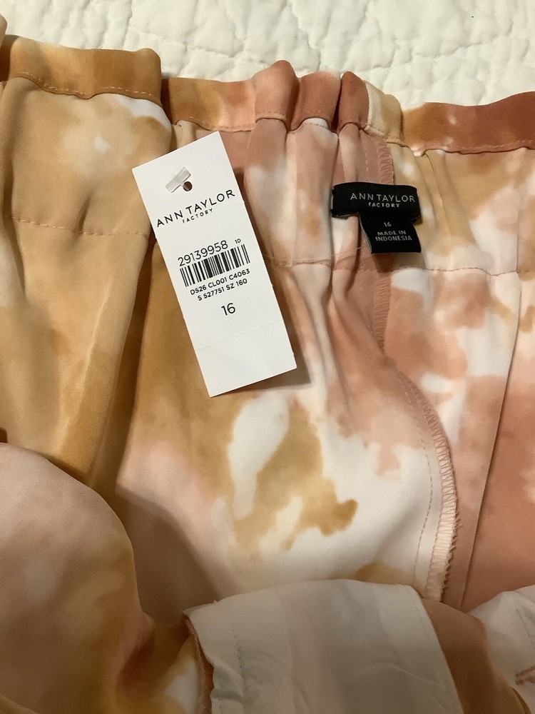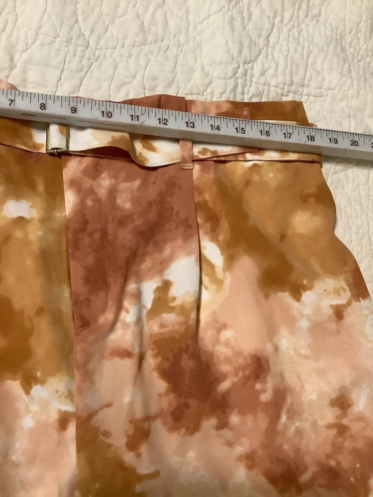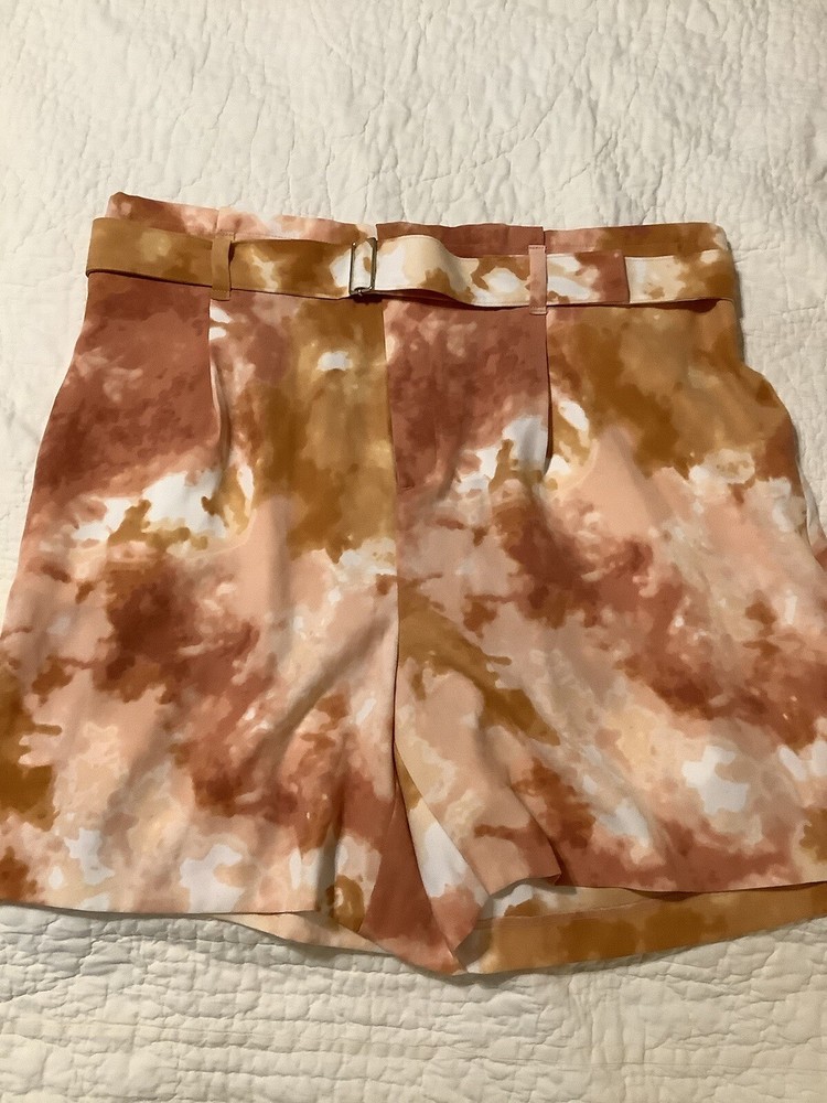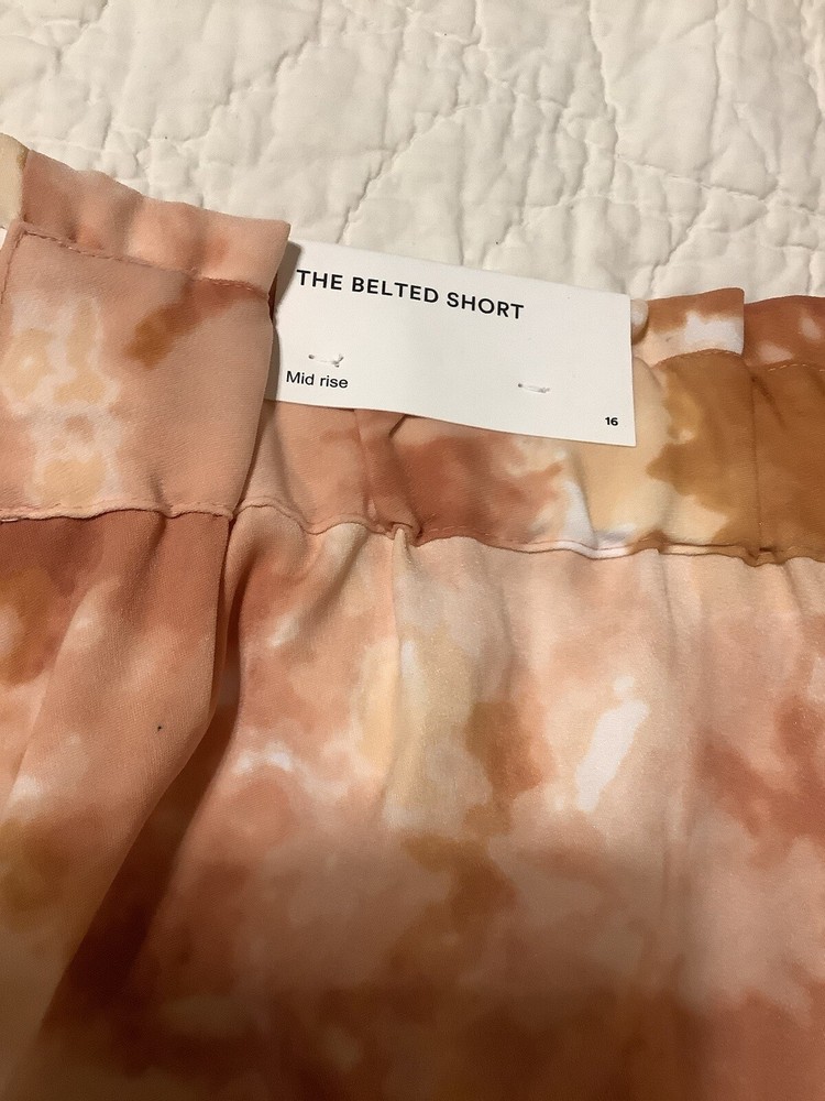 Ann Taylor Factory Womens Shorts 16 Mid Rise Belted Orange Tie-dye 6” Inseam...
