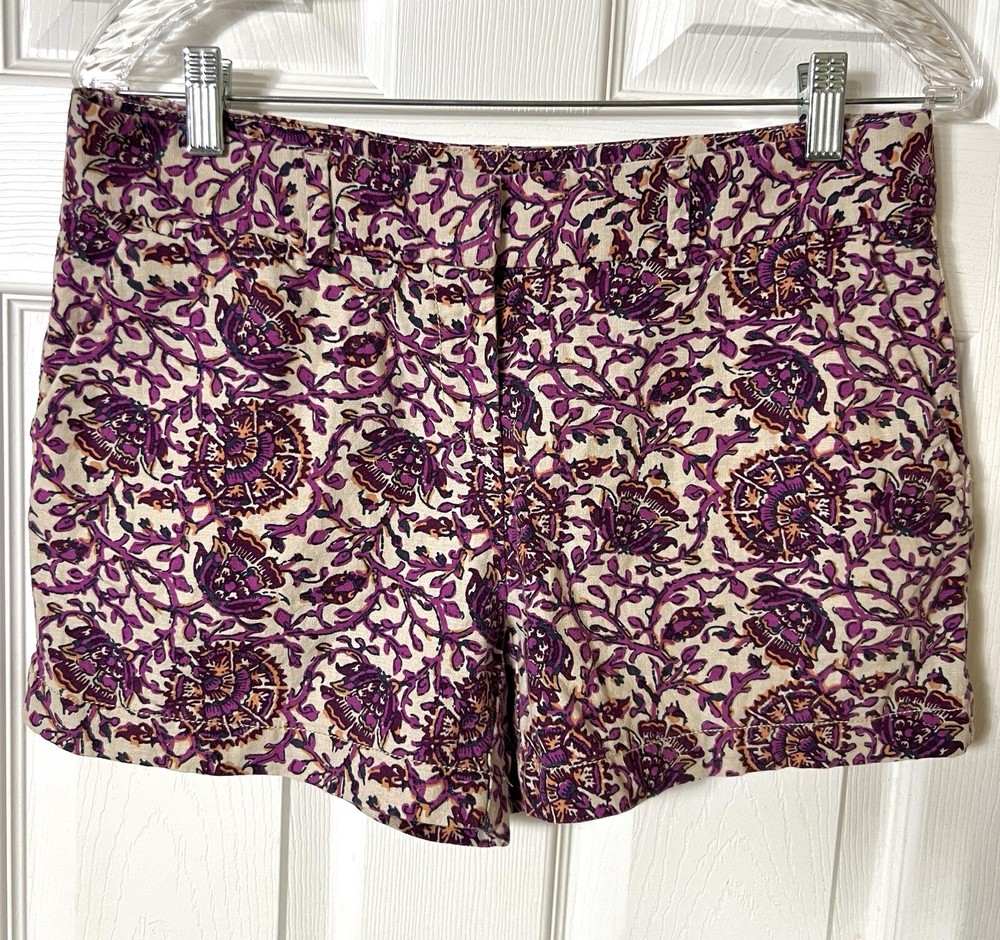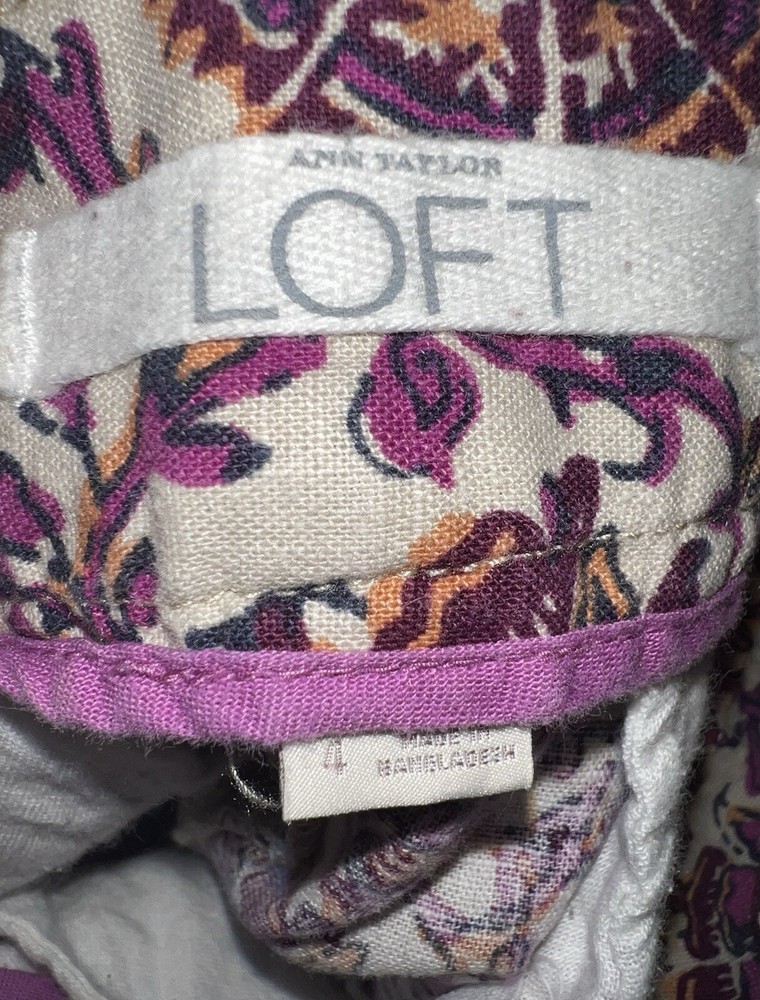Purple/cream/orange floral pattern throughout. Has hand pockets and hidden pockets on back. Made of lightweight breathable linen/cotton blend. Has belt loops. Zipper/hook & loop closures. Mid rise. In EUC. LOFT brand size 4(Small) Waist:32” Length:12” Inseam:3” 9.5” Mid Rise 🌼Fast next business day shipping #Mid Rise Shorts #Mid Rise #Shorts #Women’s Shorts #Boho #Bohemian #Floral #Flower #Flowers #Casual #Business Casual #Work #Office #Career Wear #Linen #Cotton #Lightweight #Dressy #Spring #Summer #Breathable #Women’s Top #Women’s Tops #Women’s Blouse #Women’s Blouses #Top #Tops #Blouse #Blouses #Women #Women’s #Patterned #Linen Shorts #Patterned Shorts