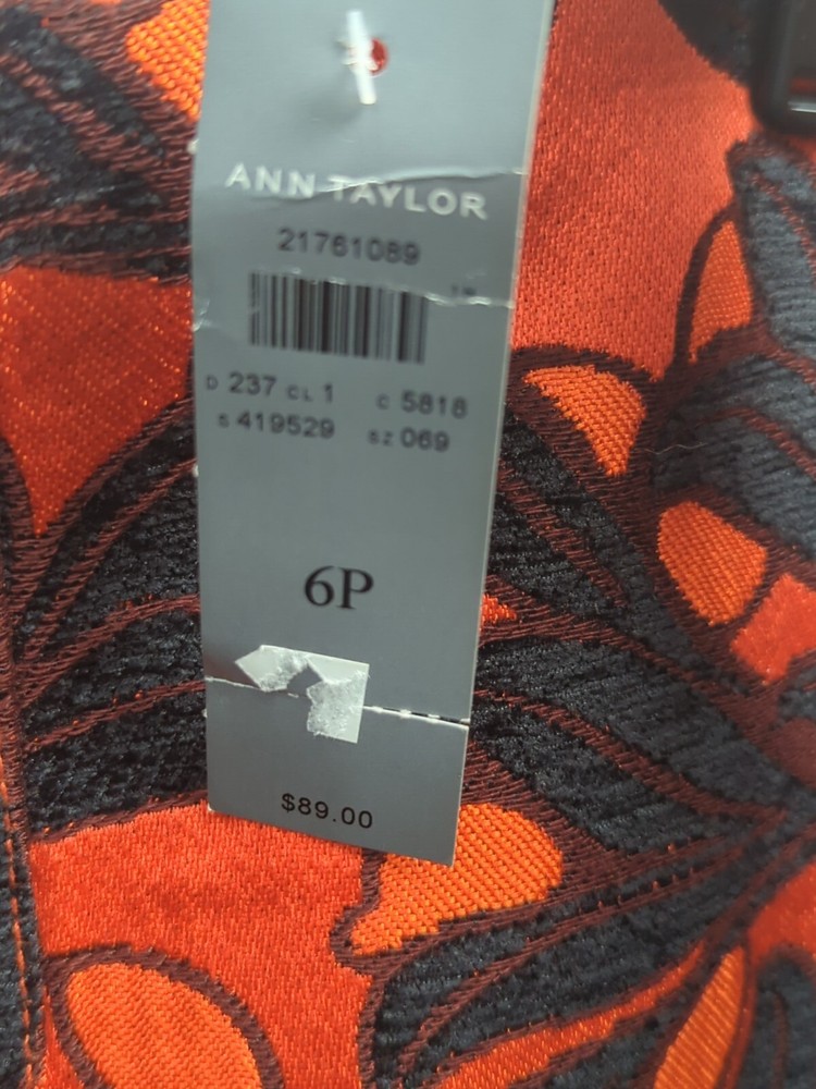 Ann Taylor NWT Orange Red Vine Jacquard Side Pocket Skirt Above Knee Womens 6p. Condition is new with tags. Please see all photos for condition and measurements....
