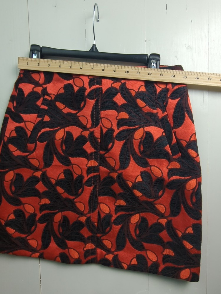 Ann Taylor NWT Orange Red Vine Jacquard Side Pocket Skirt Above Knee Womens 6p. Condition is new with tags. Please see all photos for condition and measurements.