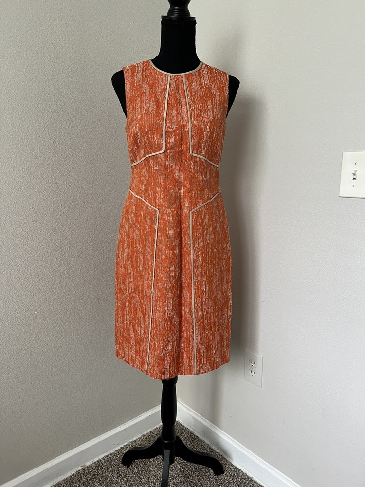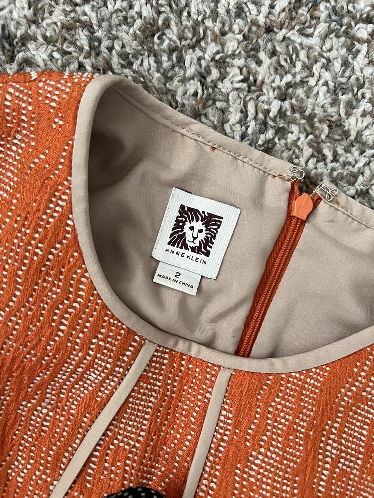 Anne Klein Textured Orange Career Sheath Dress 2. Size: 2 Excellent Condition 16” Chest / 30” Waist / 36” Length 32% Cotton / 27% Polyester / 24% Viscose / 17% Linen MSRP: $124...