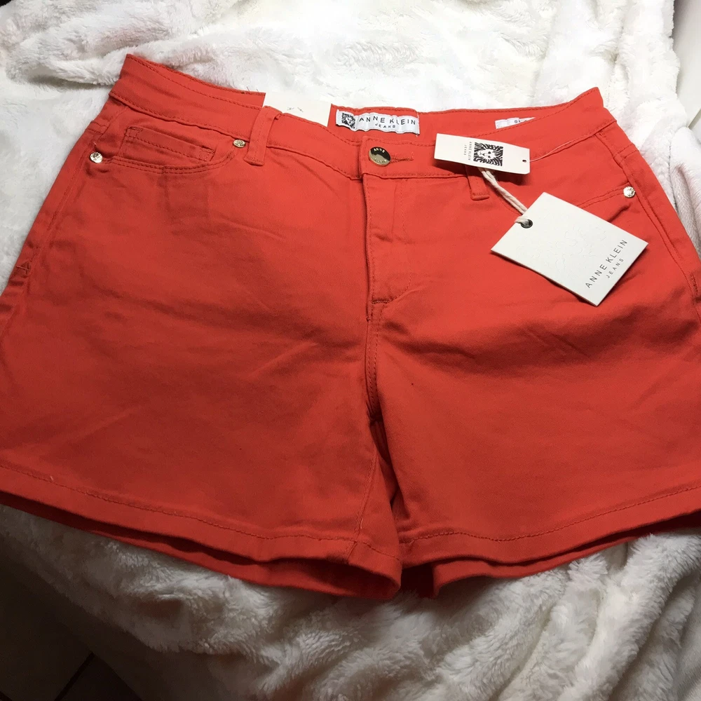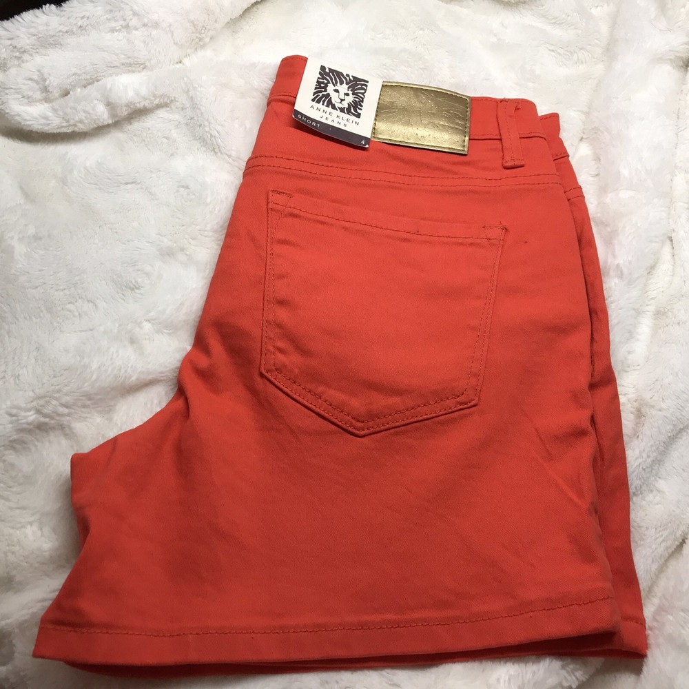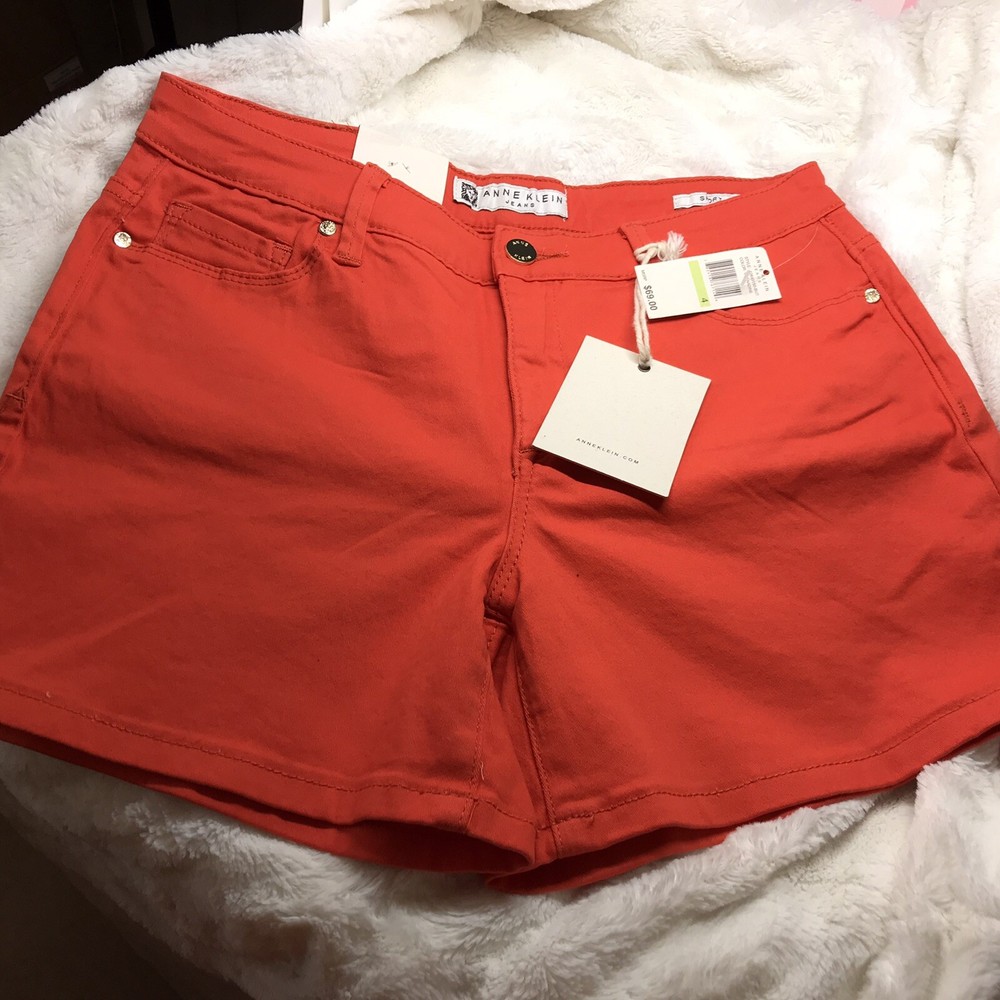Anne Klein women’s Short, orange color, missy style, size 4, gold button details. Shipped with USPS First Class Package.