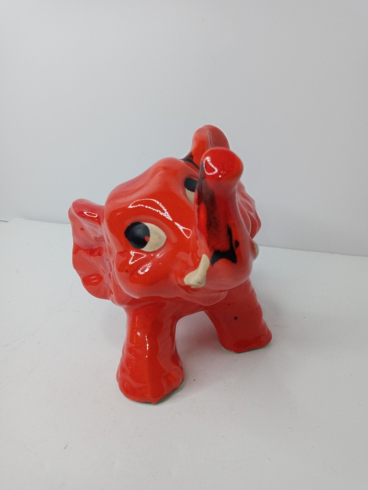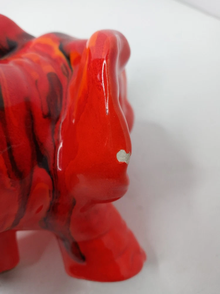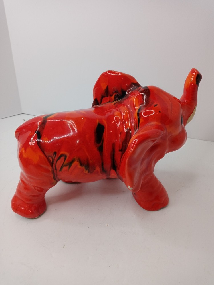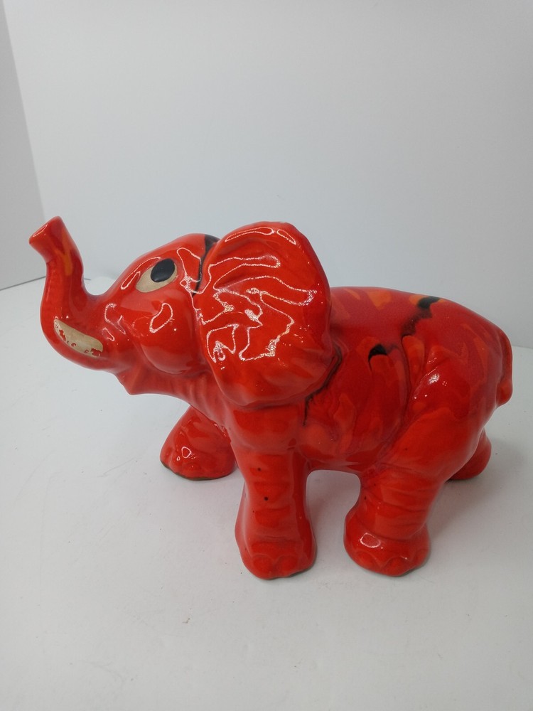 Elephant Figurine Ceramic Trunk Up Drip Glaze 10" x 8" Handmade. Small nick behind ear as seen in last pic............... We try to source items that are in great shape , unless other wise noted above. This item will be in good used condition with no major defects. All used items will show wear , expect minor marks / wear to fabric and friction surfaces. Thank you for considering our items