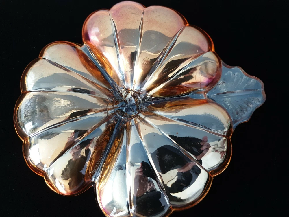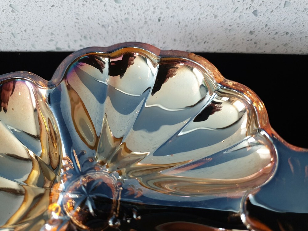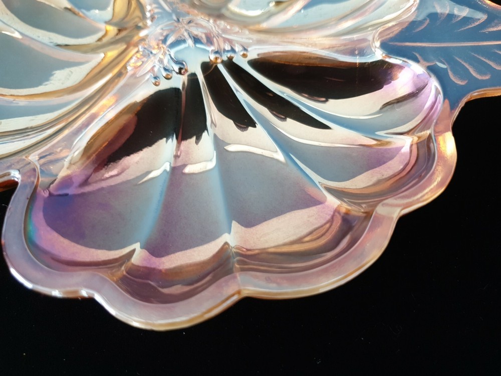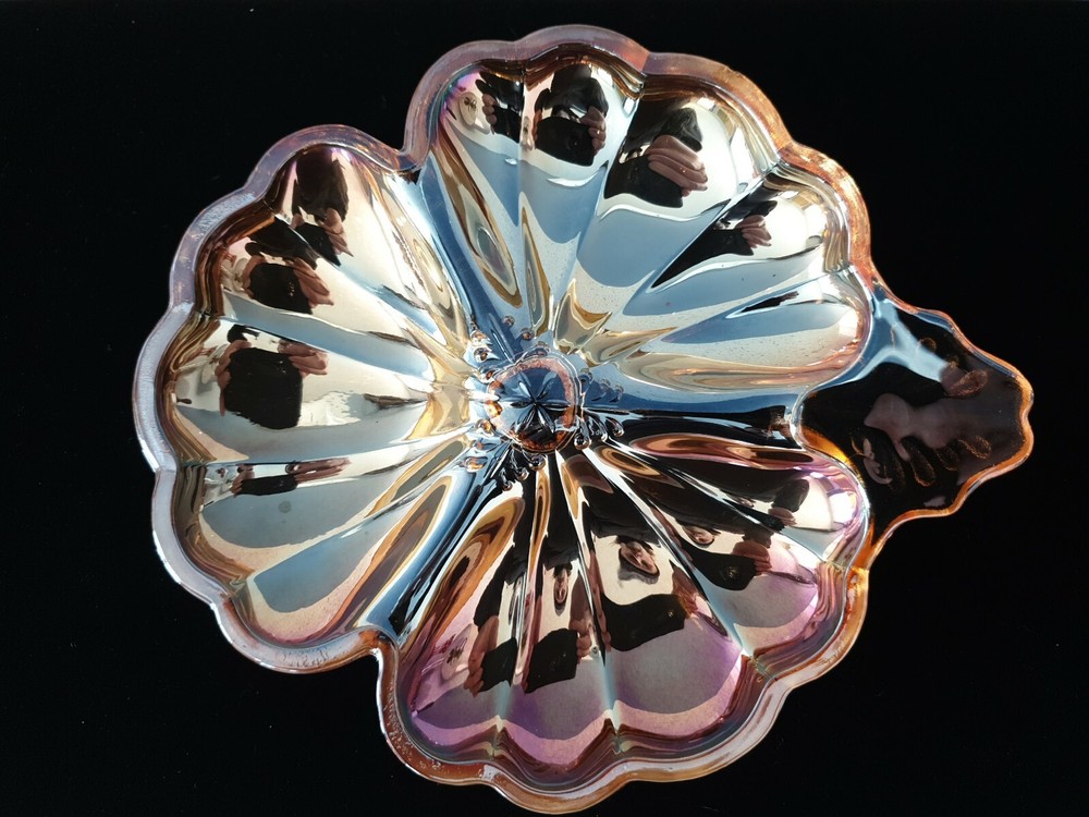 Antique Vintage Carnival Glass Iridescent Luster Opalescent Candy Dish Clover #1. Condition is "Used". Shipped with USPS Priority Mail. Measures approximately 7". No chips, cracks, or repairs. Guaranteed original.