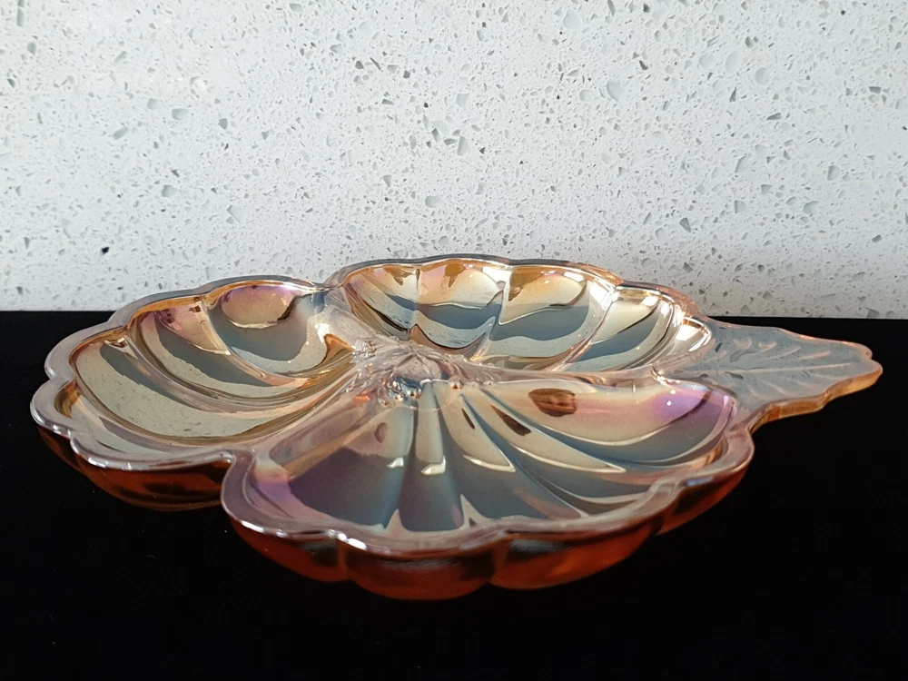 Antique Vintage Carnival Glass Iridescent Luster Opalescent Candy Dish Clover #1. Condition is "Used". Shipped with USPS Priority Mail. Measures approximately 7". No chips, cracks, or repairs. Guarant...