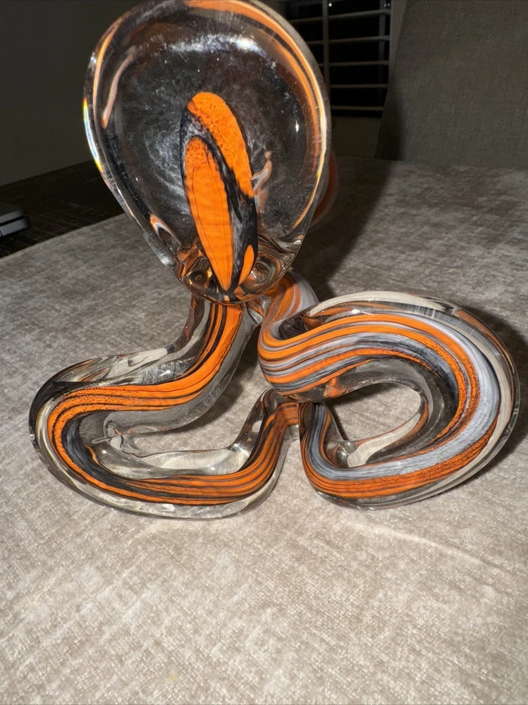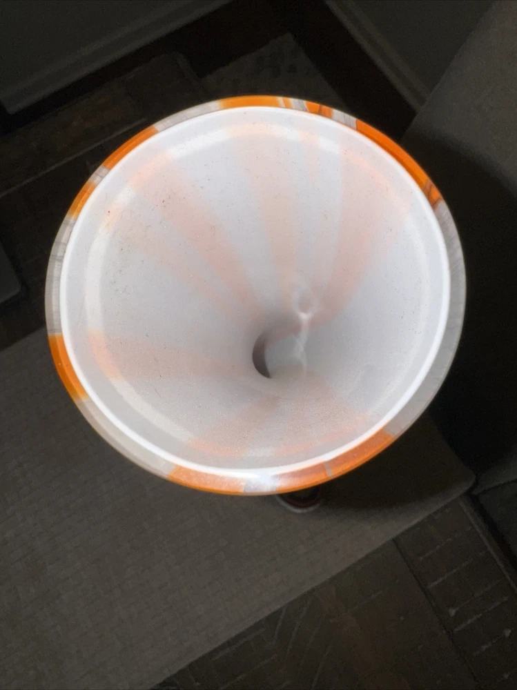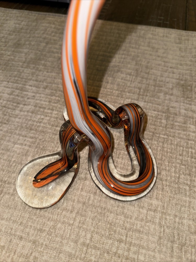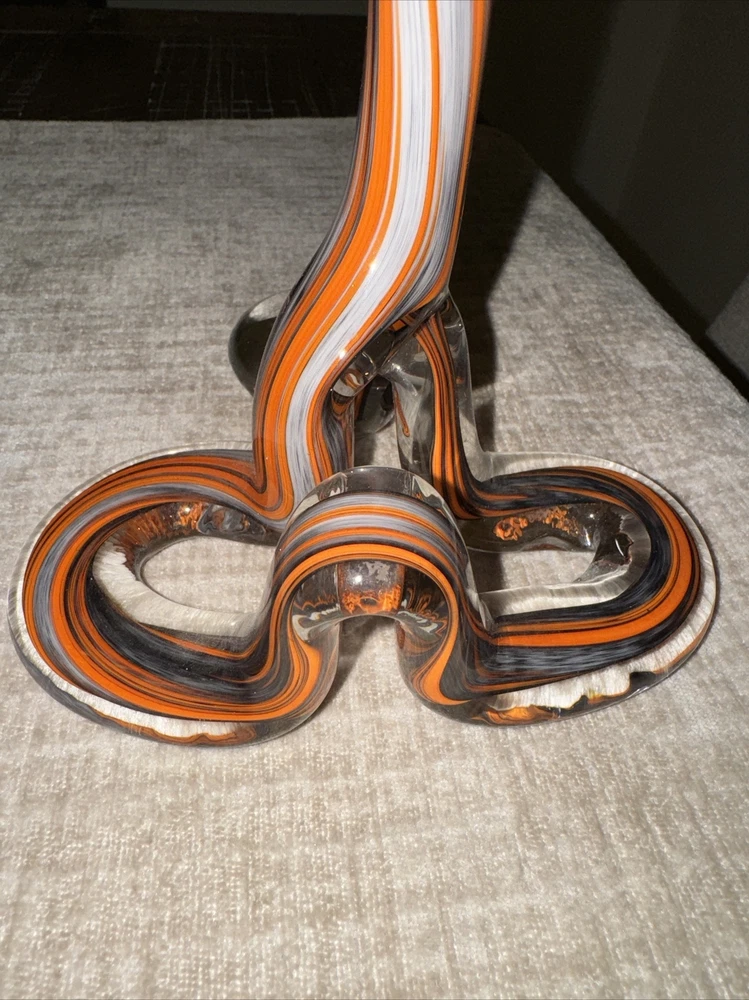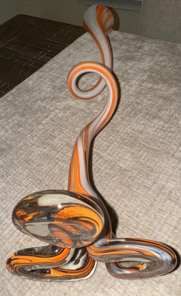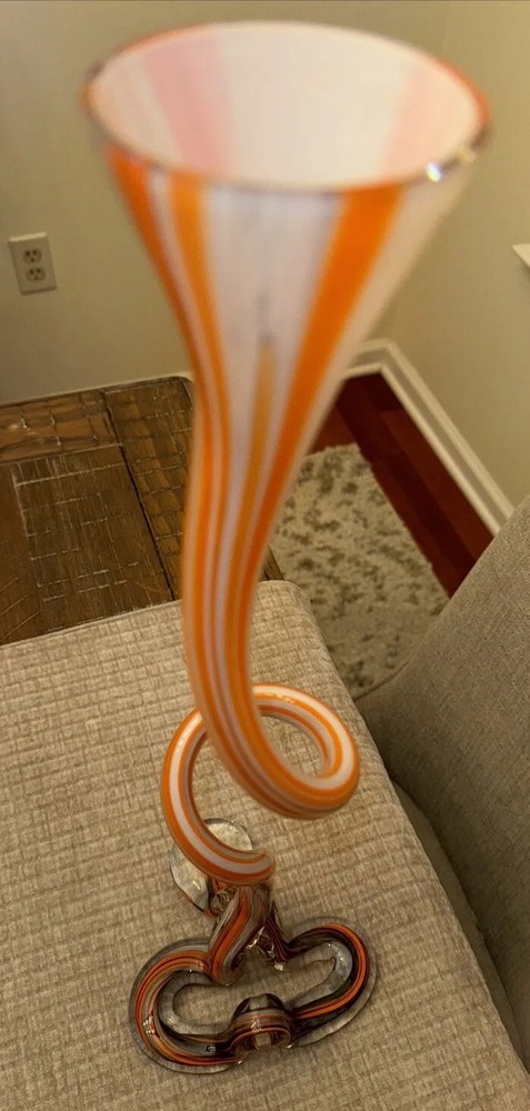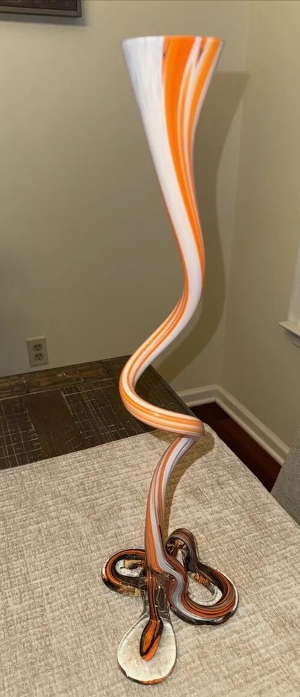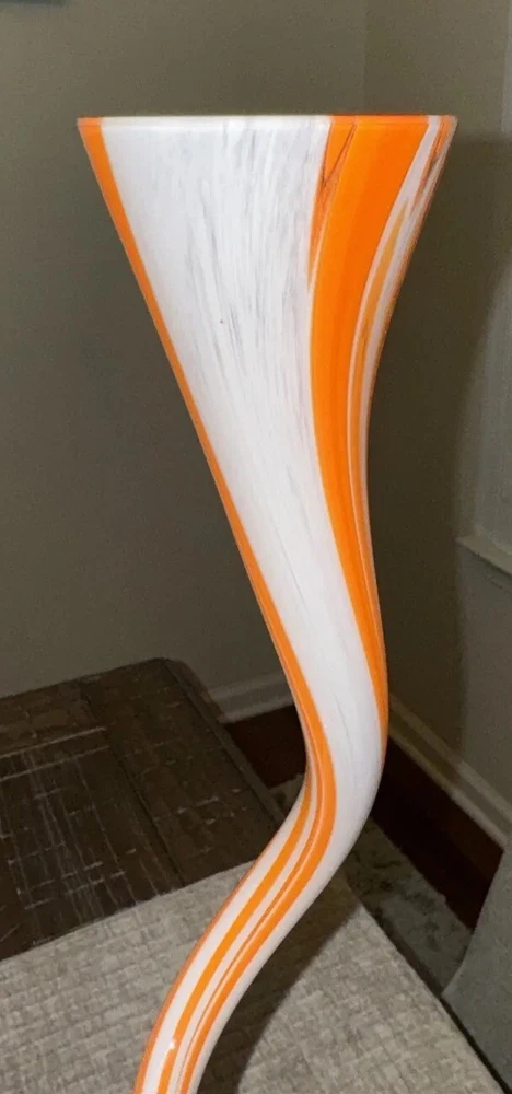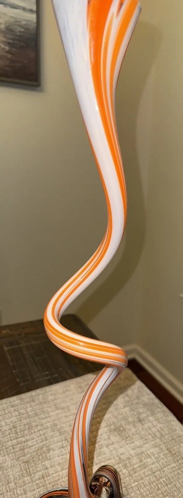 Picked up this stunning piece of artwork at an estate sale. No identifying stickers or marks. Beautiful orange swirled glass vase. Free of chips or cracks. Stands about 19 inches tall. Please see all photos for condition, size, etc., as these/this is the exact item you will receive. Thank you. (J-02)