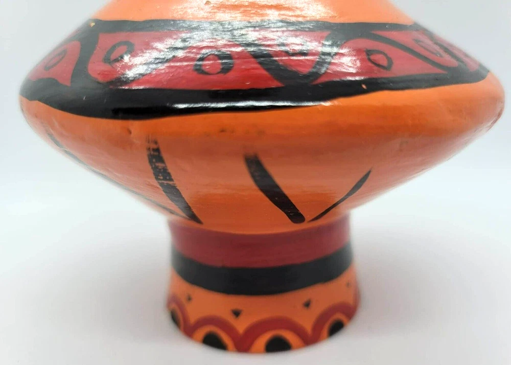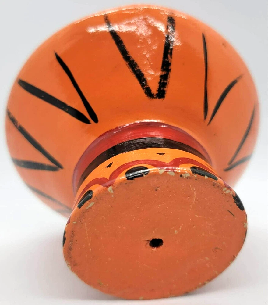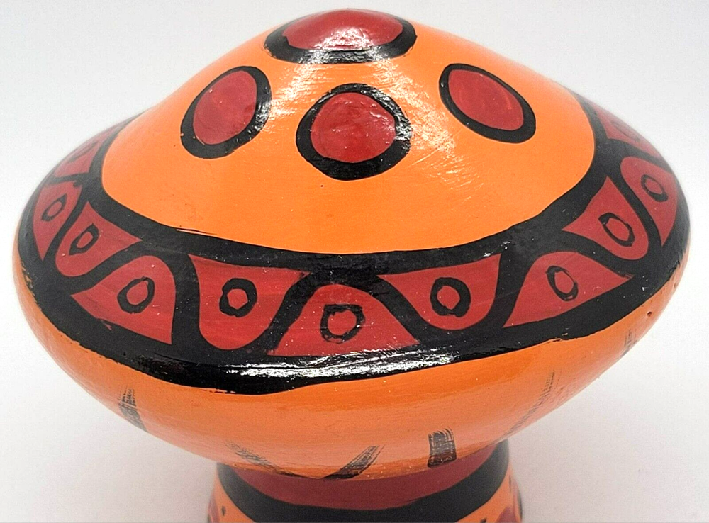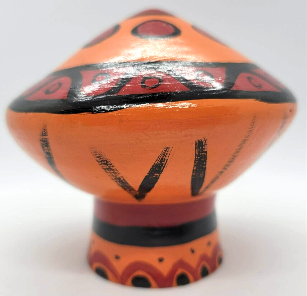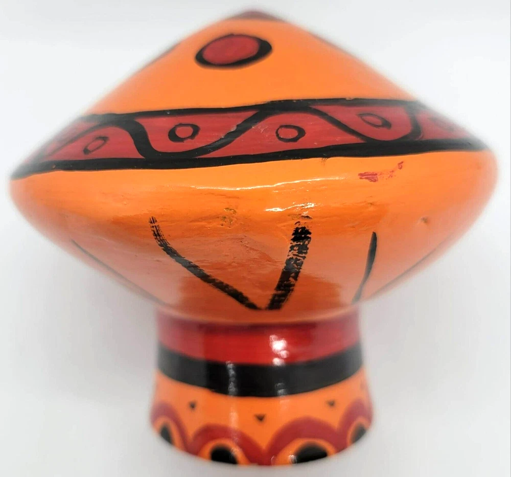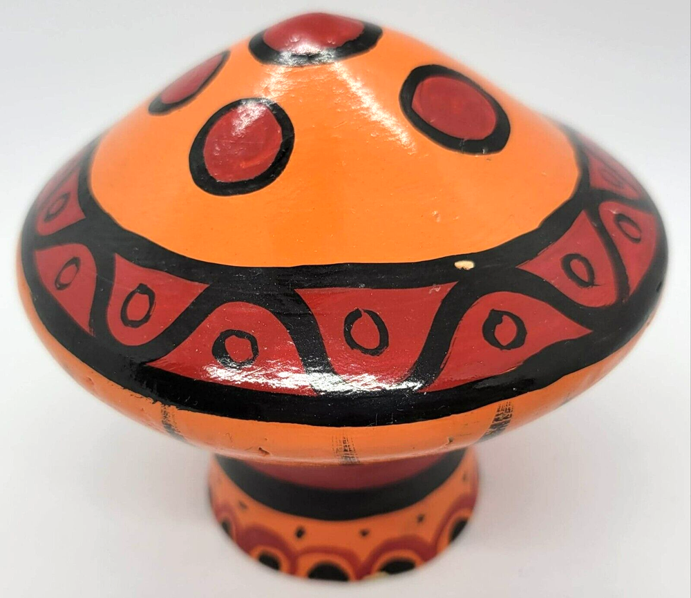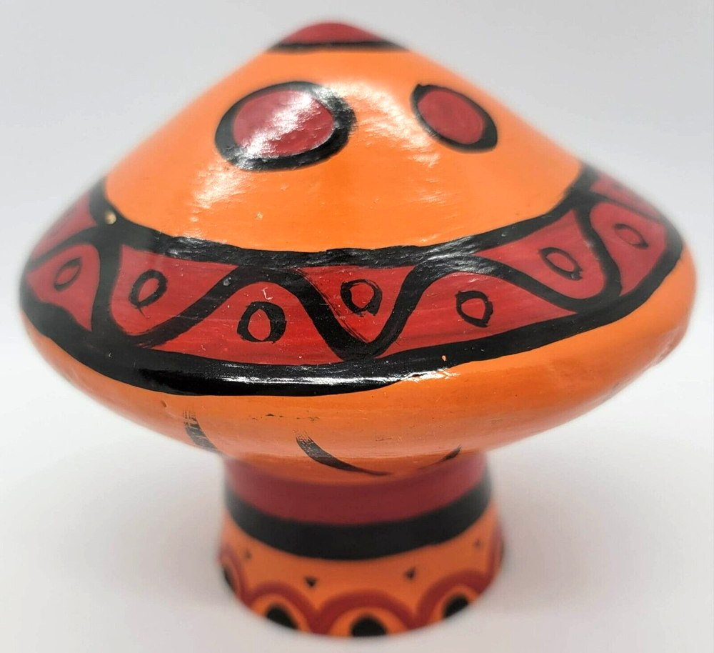 Art Pottery Mushroom Orange Red Black Figurine Mid Century - VINTAGE Measures 3.5 inches tall, 4 inches wide (at widest)...