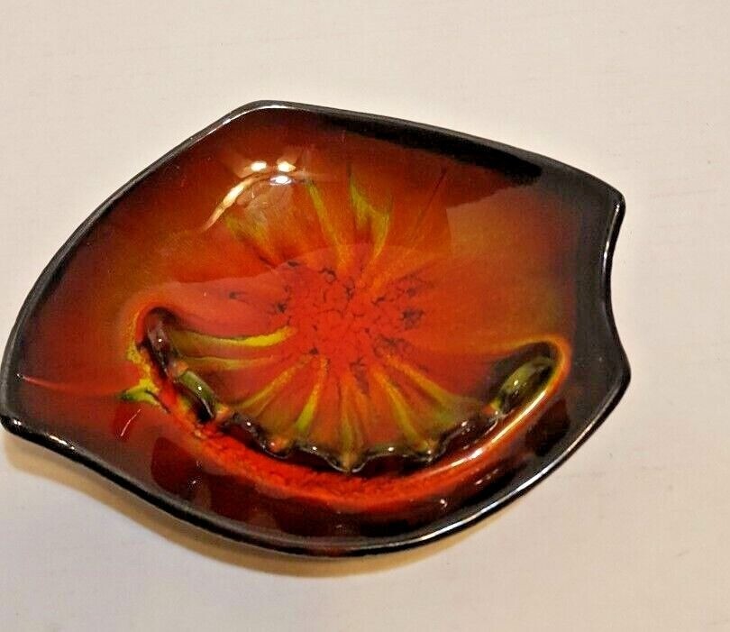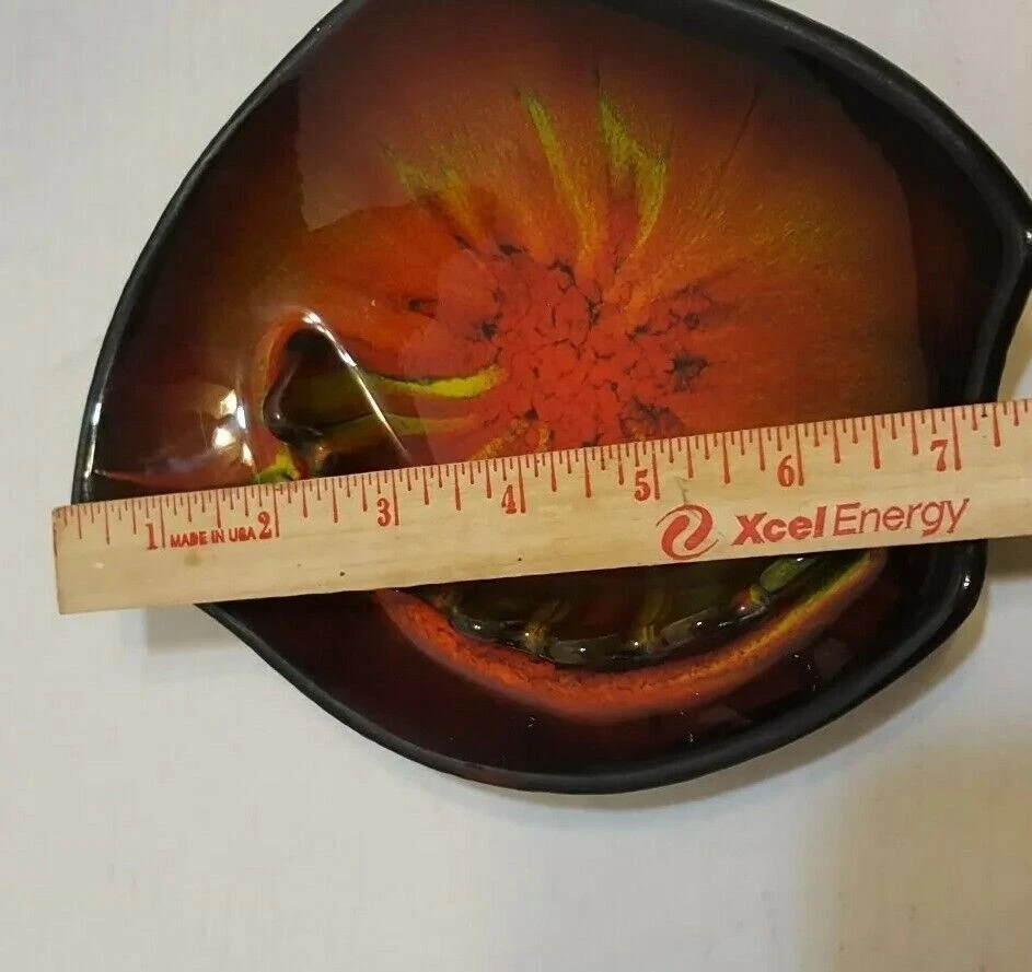 USA Red Drip Glaze Ashtray USA 2840 Mid Century 6.5" x 7.5"
