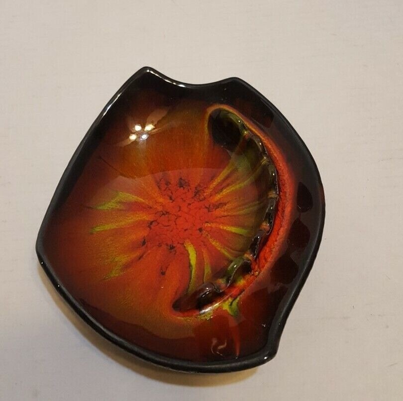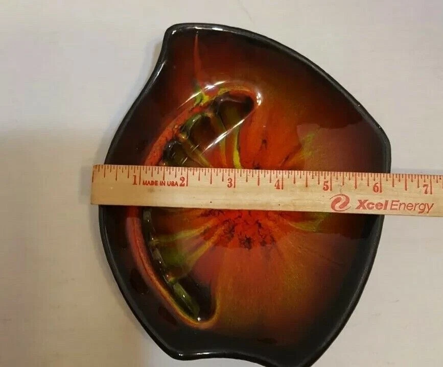 USA Red Drip Glaze Ashtray USA 2840 Mid Century 6.5" x 7.5"...