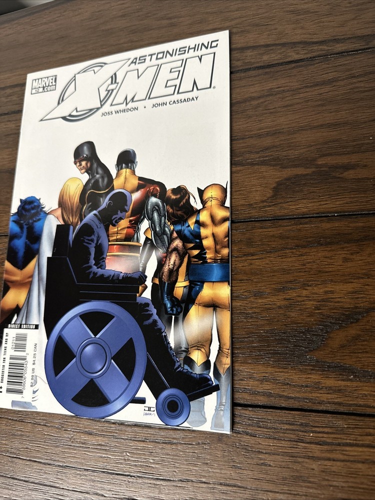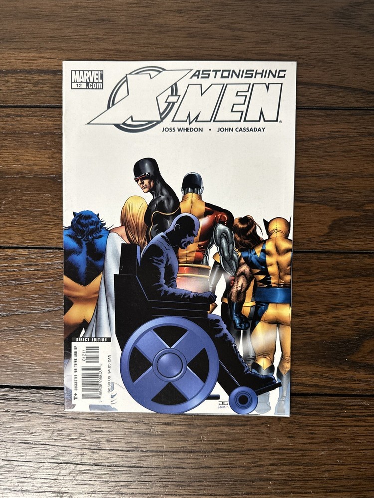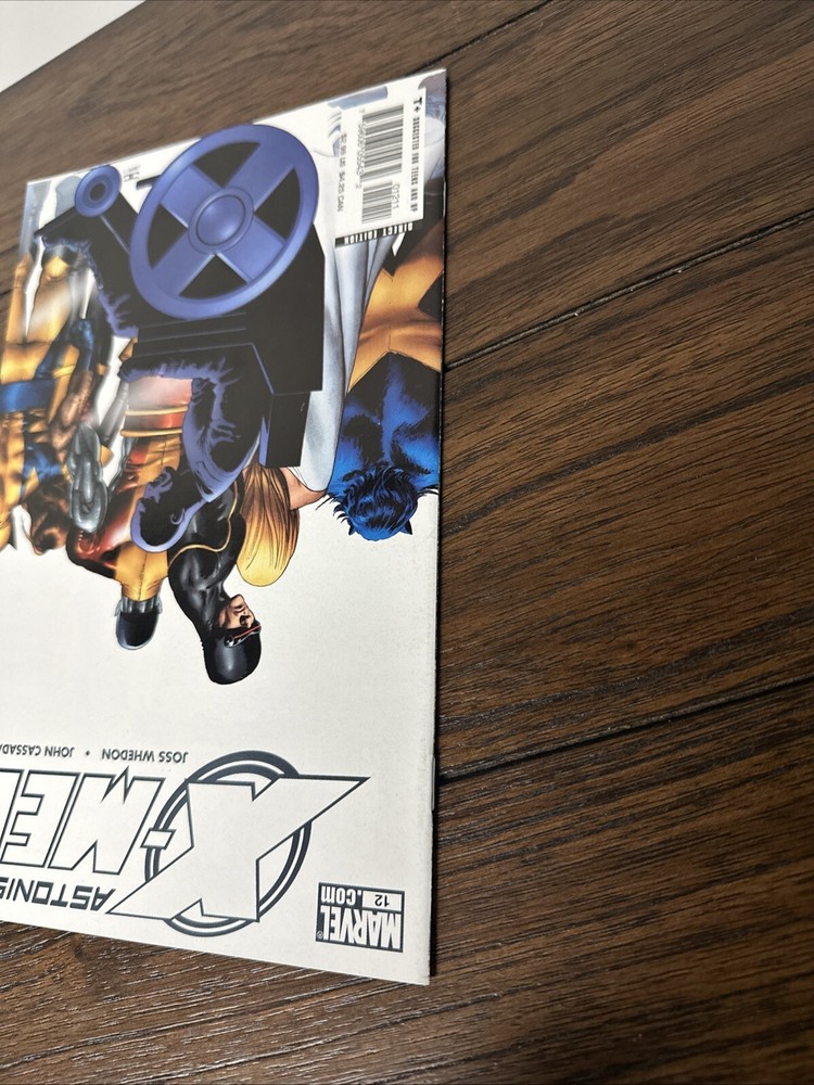 The comic book is "Astonishing X-Men #12" from the 3rd series, published by Marvel Comics in 2005. It features the X-Men superhero team and is written by Joss Whedon and illustrated by John Cassaday. The cover art is done by John Cassaday, and the comic is in English language and softcover format. This issue is signed by Joss Whedon and includes boarded features, making it a collectible item for fans of action-packed superhero adventures in the Marvel Universe.