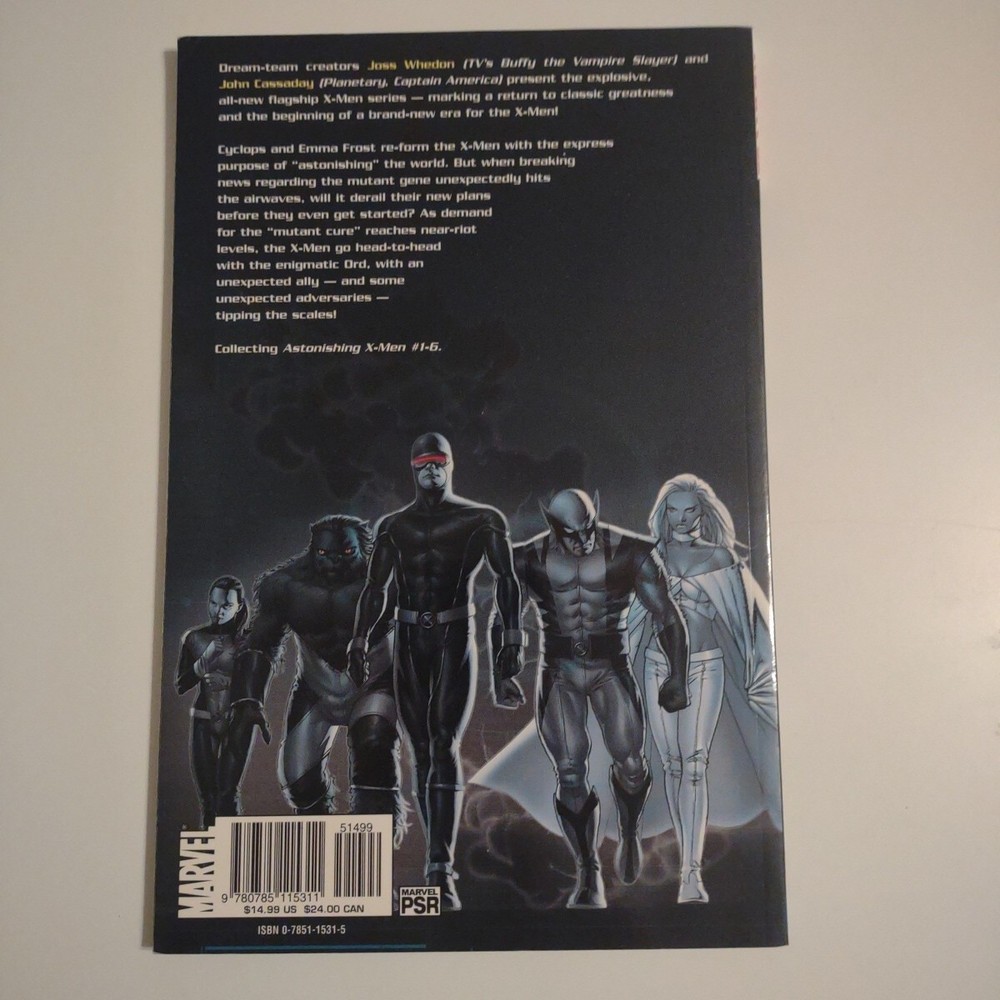 This is a trade paperback comic book from the Astonishing X-Men series. It features the iconic superhero team including Cyclops, Wolverine (Logan), Phoenix, Professor X, and Beast. The cover art is by John Cassaday and the story title is "Here Comes Tomorrow; Planet X; Assault On Weapon Plus". The comic was published by Marvel Comics in 2008 and is part of the Modern Age era (1992-Now). It is a single unit and comes in English language. This collectible item is perfect for any fan of US Comics, Marvel (MCU), and superheroes.