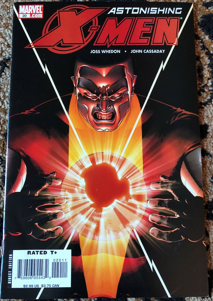 Astonishing X-Men Vol 3, #20 ( Febuary 2007) -Joss Whedon, John Cassaday- Marvel Some small minor creases on front cover and on back cover near spine, and one large one above UPC near spine. Judged to be Near Mint-. Having crashed on the surface, the three X-Men teams regroup. Wolverine and Armor take time out for Wolverine to heal, Colossus and Kitty tear through their opposition on the way to the newly unearthed tomb, and Cyclops, Emma, Hank and Agent Brand find the tomb, complete with a graphical depiction of the prophecy. Also selling many other comic books--Marvel, DC, and indies. And we combine shipping. Please contact us if you wish to purchase multiple books so we can send you an invoice with the combined shipping. Thanks.